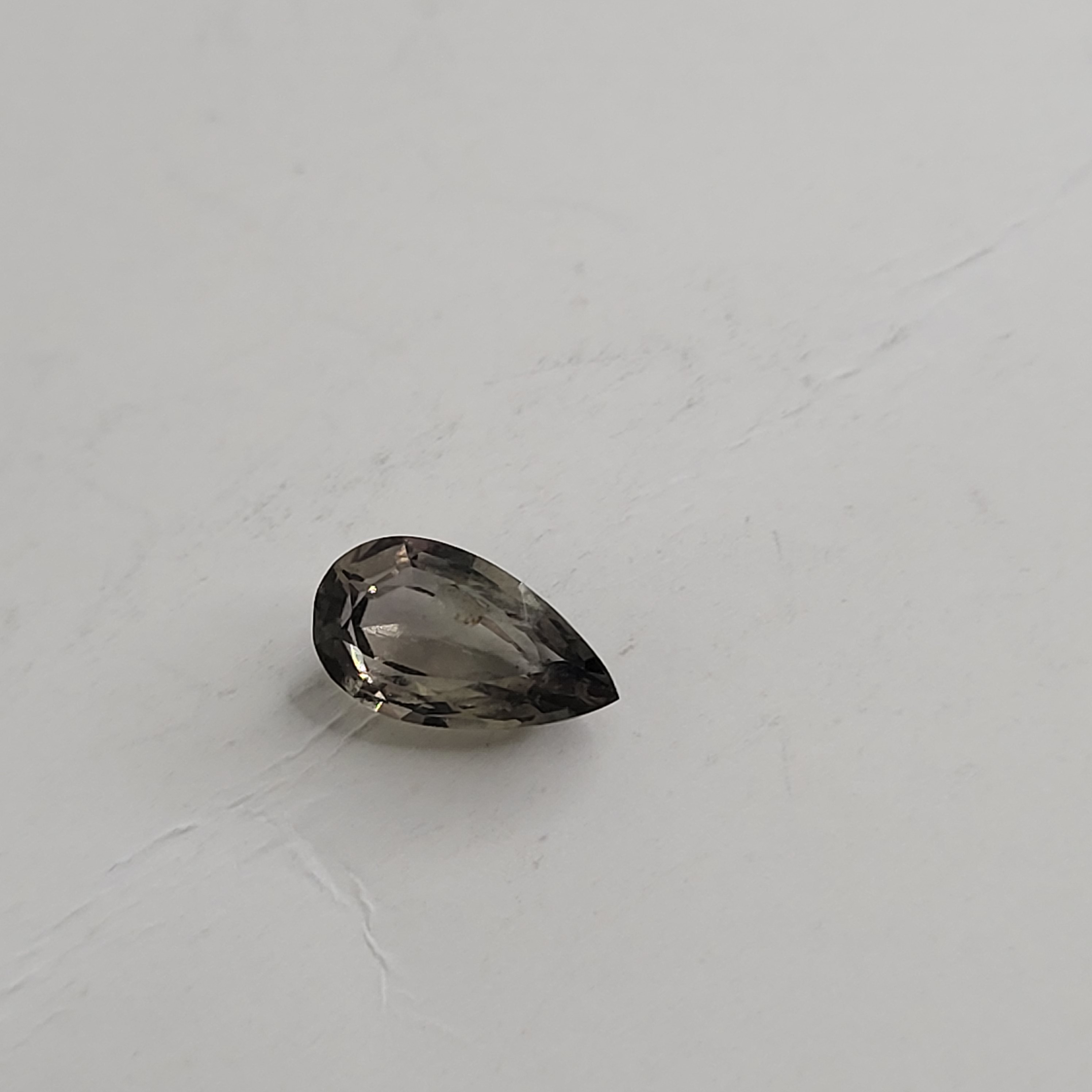 A mesmerizing 1.82 carat Montana sapphire in a pear-shaped cut, showcasing rare polychrome coloration with dynamic shifts in hue. This natural gemstone reveals a captivating interplay of smoky grays, earthy browns, and subtle flashes of violet and blue depending on the light source — a true color-changing marvel. Expertly faceted to enhance its internal reflections, the sapphire balances clarity with organic inclusions that speak to its raw origin. Ideal for collectors or designers seeking a statement piece with geological intrigue and visual drama. AdminCode: BK5/wgr