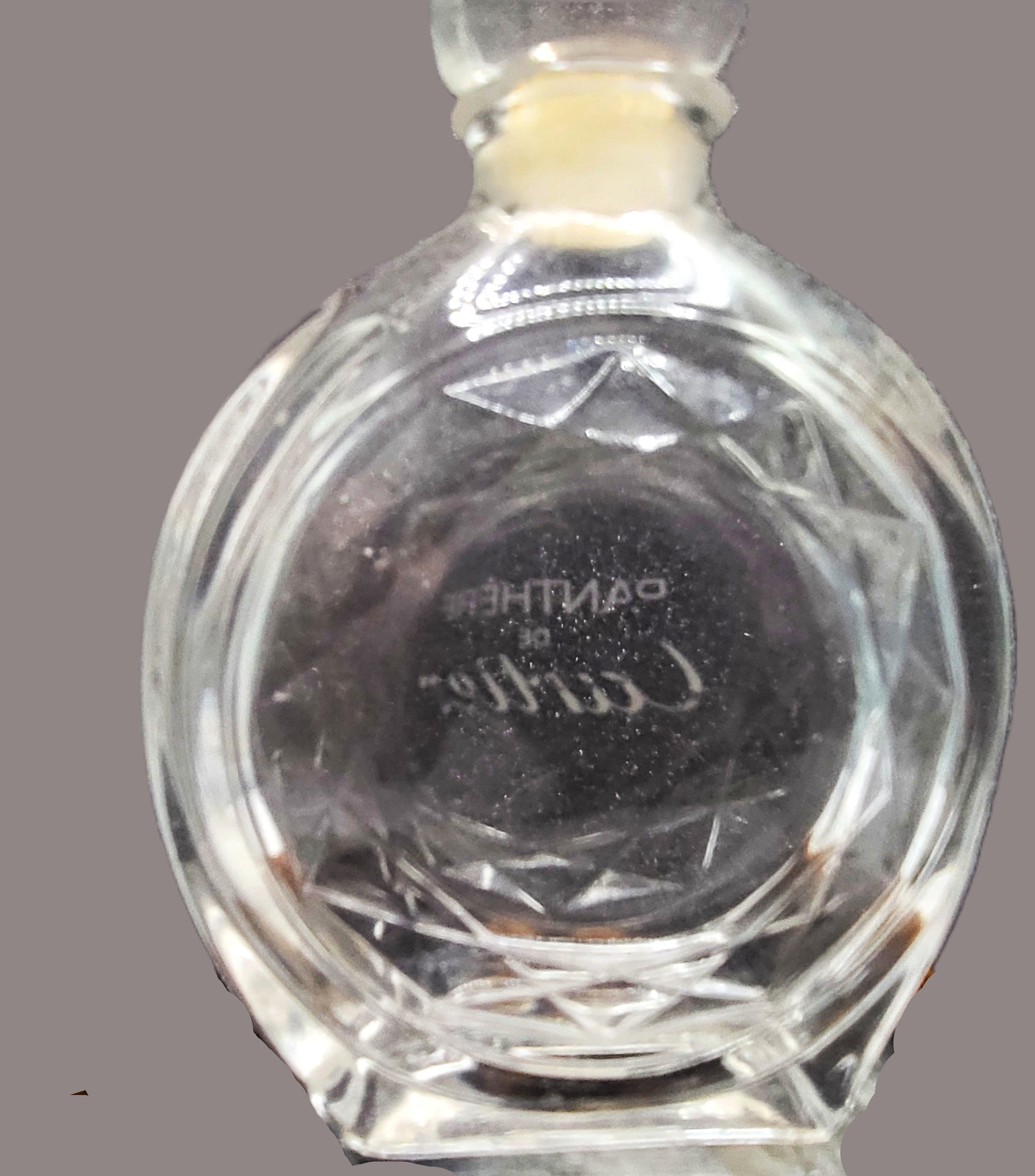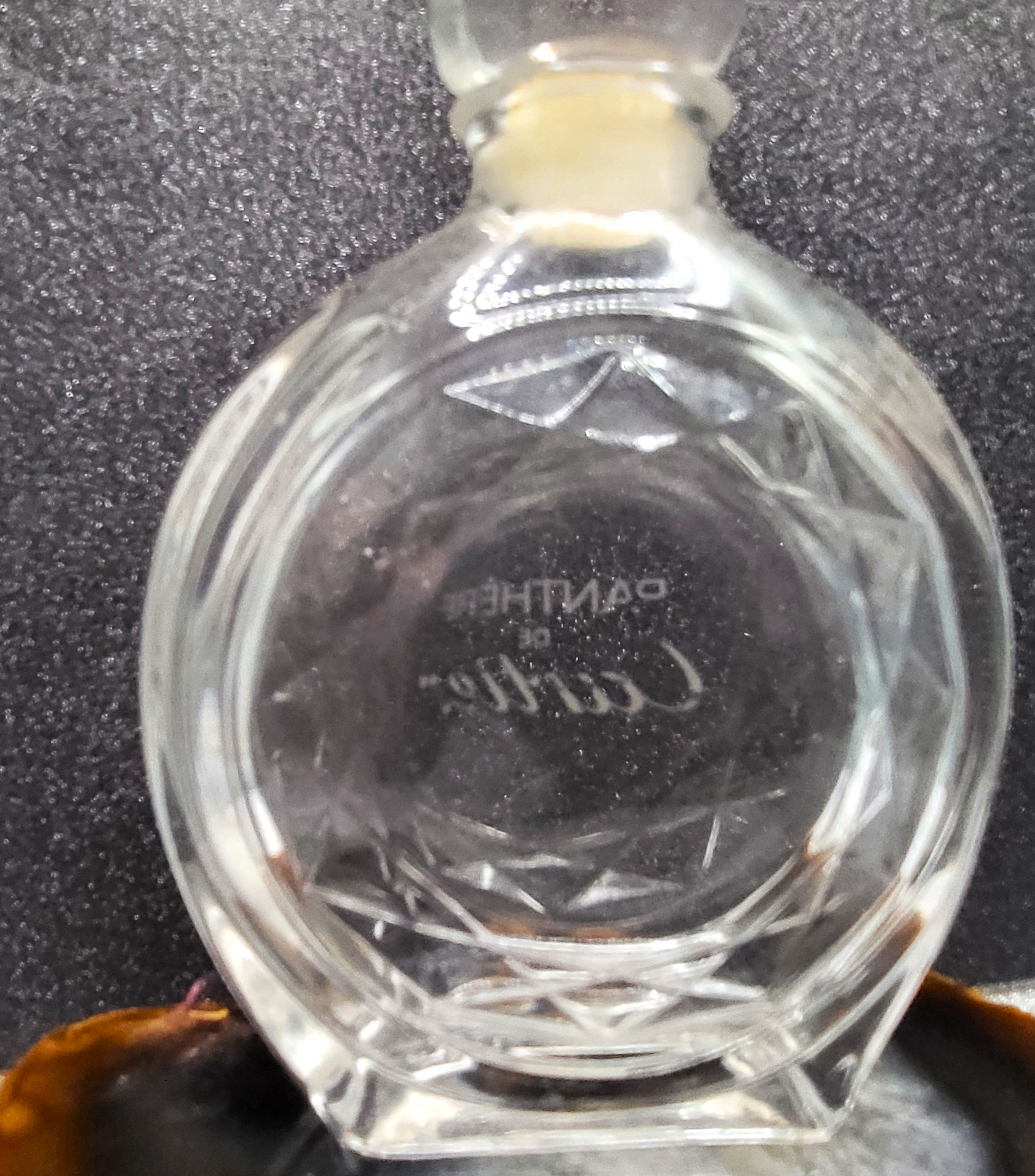 This is an authentic empty decanter-style bottle that once held Eau de Toilette Pantere’ by Cartier of France. The collectible glass decanter-style bottle is topped with the iconic Cartier panther, which is in excellent condition. According to the original owner, this bottle was purchased approximately in 1992. AdminCode: CAJ1/ne