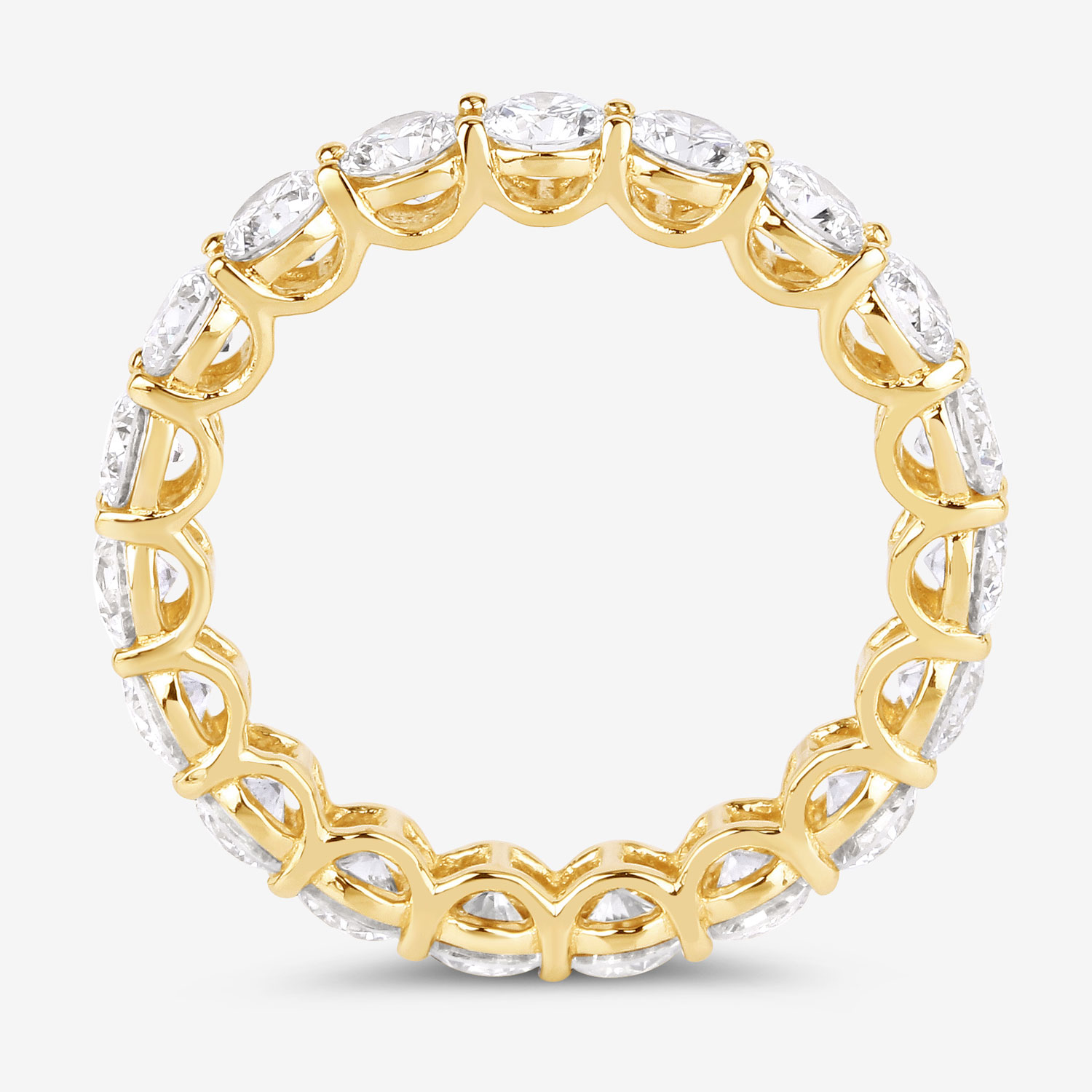 This 14 karat yellow gold ring features 3.00 carats total weight of round, brilliant-cut, colorless to near-colorless, prong-set, lab-grown diamonds. The ring is US size 7 and resizing is limited. Please consult with your local jeweler for sizing possibilities. See below for more details and other information. 2.69 grams. Admin: Q5743/12-owo