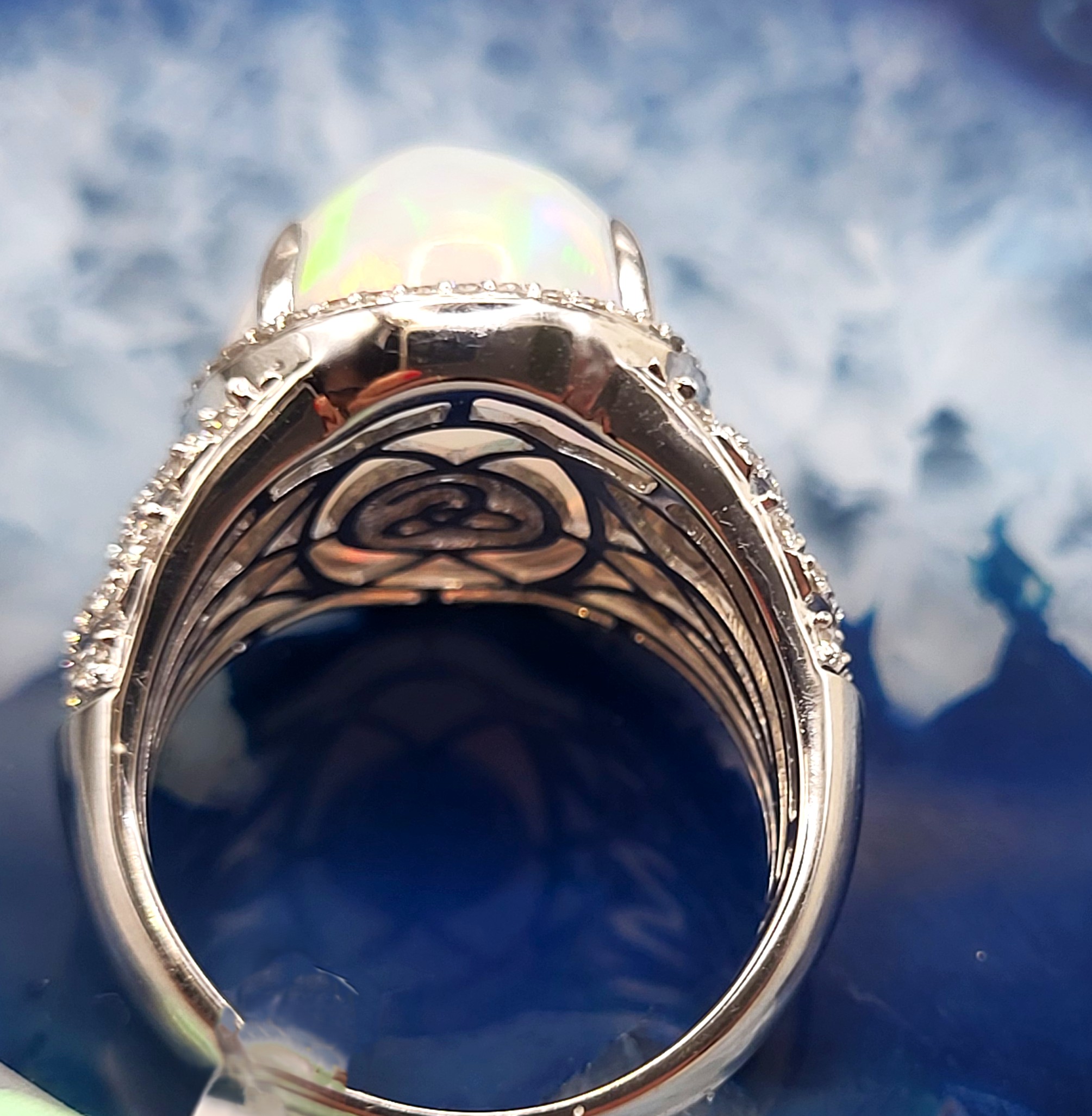 #Auction13 #OrionOpal #EthiopianOpal #DiamondHalo #LuxuryRing #FineJewelry #18KWhiteGold #BidFairTreasures #CelestialGem #CollectorElegance #WeloOpal