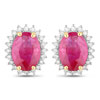This pair of 14 karat yellow gold earrings feature 2.88 carats total weight of oval-cut, pinkish-red, genuine rubies that are prong-set along with .26 carats total weight of round, brilliant-cut, H-I color, I1 clarity diamonds in the glittering halos. The earrings attach to the earlobes with posts and friction backs. The rubies are 8x6mm and are heat-treated as in the common practice of most rubies used in jewelry. See other important details below. Gross Wt:2.75 AdminCode: QNNK/lrin