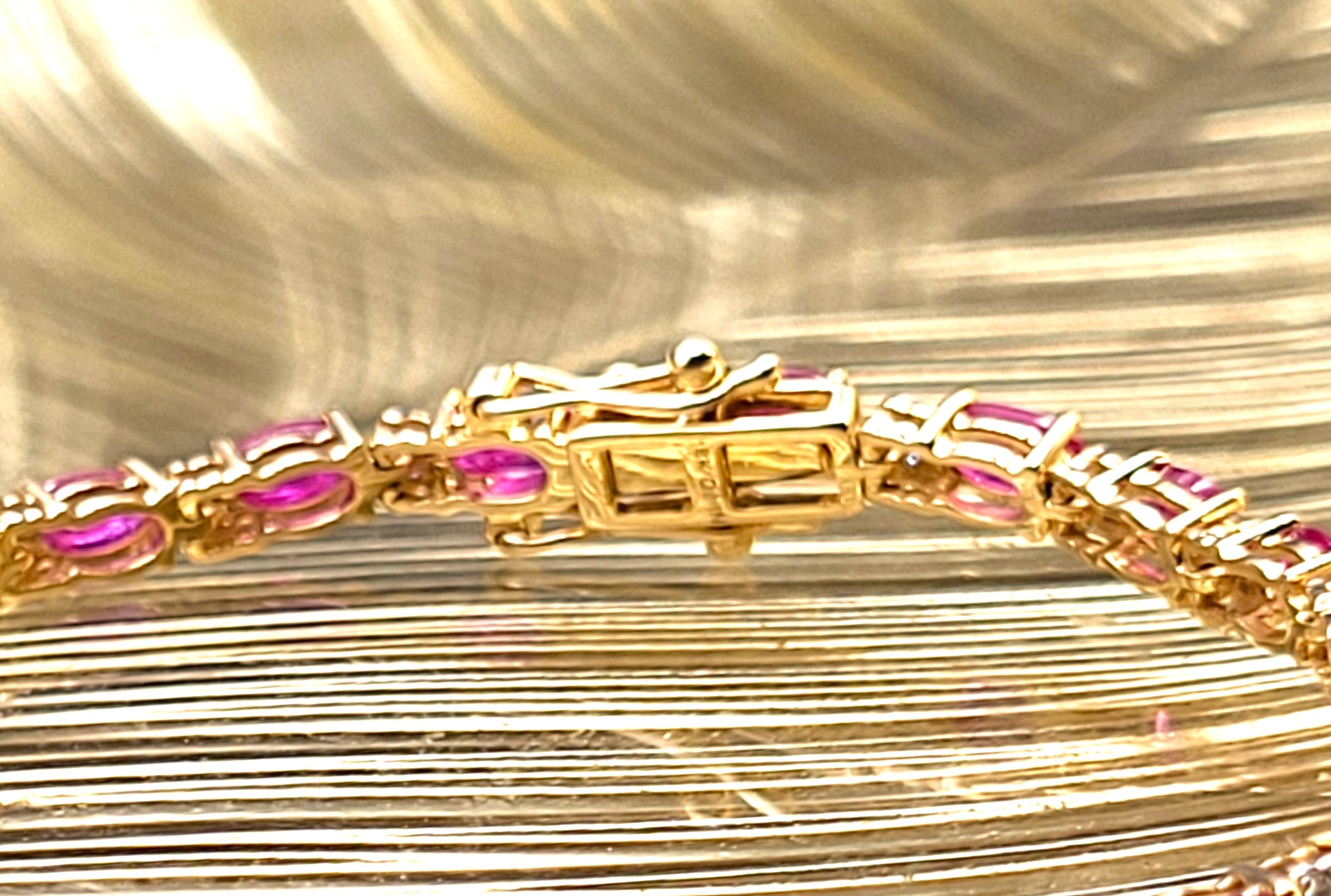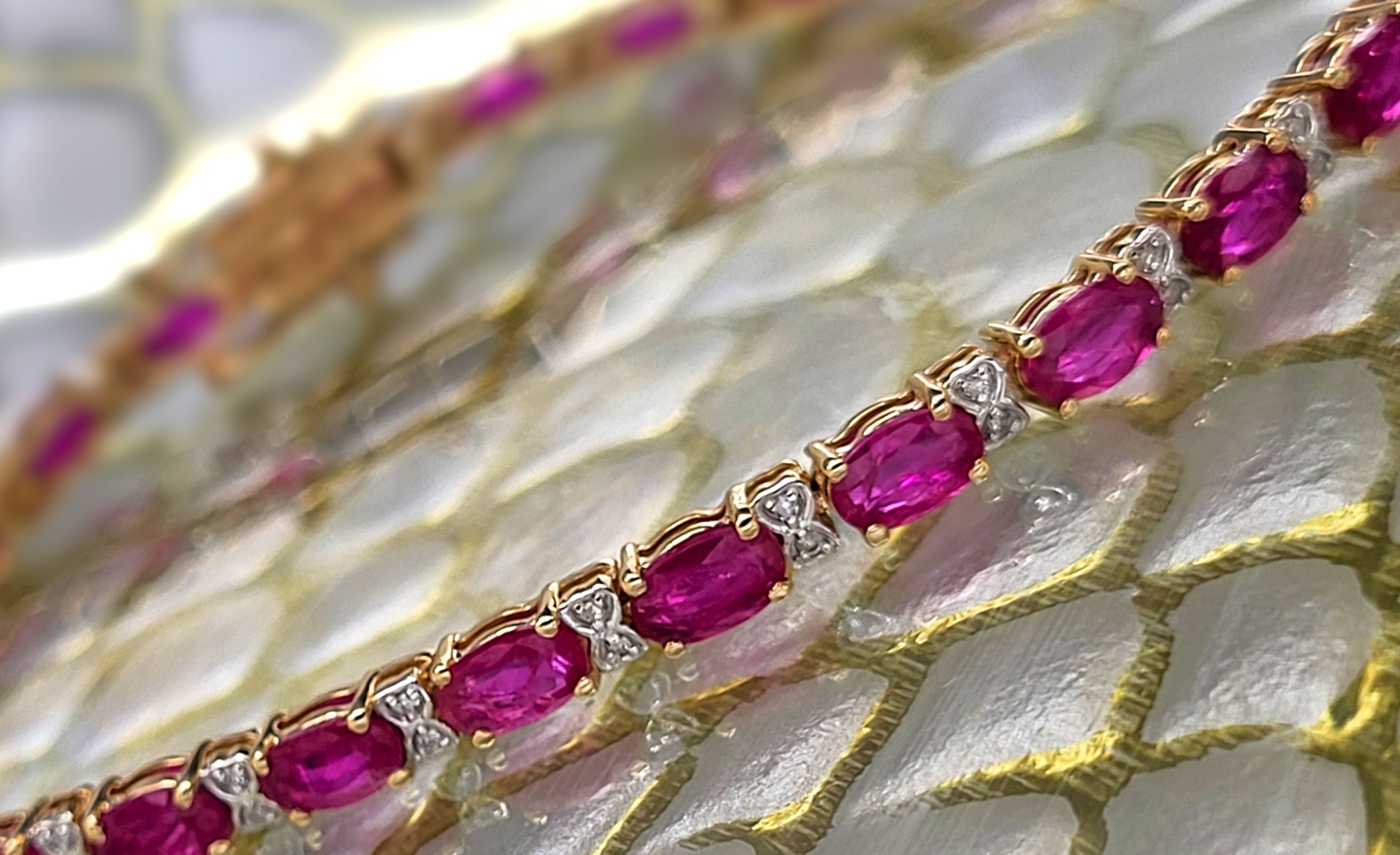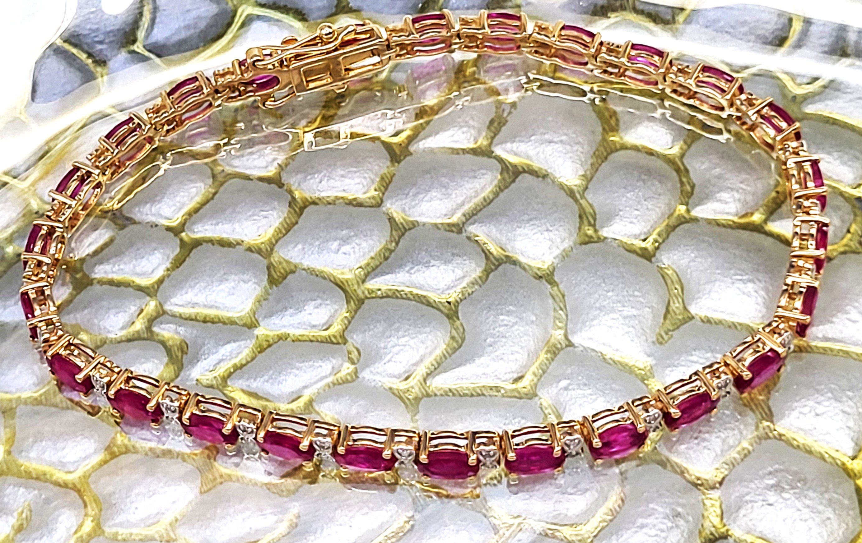 Setting: 14K Yellow Gold Main Gemstone: Genuine Ruby Adjacent Gemstone: Genuine, Natural Diamond Length: 7″ This item qualifies for a FREE electronic appraisal. Upon payment in full, an independent GIA graduate gemologist will prepare and write the appraisal and email it to the winner. The appraisal can then be downloaded and printed. THE CONSIGNOR REQUIRES A WIRE TRANSFER, ACH, OR ZELLE AS THE ONLY FORMS OF PAYMENT FOR THIS ITEM. The color red symbolizes a wide range of concepts and emotions. including love and excitement, danger and aggression, plus strength and courage. Whatever it means to you, this ruby bracelet with let everyone know you mean it! This 14 karat yellow gold bracelet contains over 5.00 carats of genuine, oval-cut rubies and each ruby represents an individual link. The links are separated by diamond-accentuated bow-tie shaped hinge covers. That means this bracelet has 5.87 carats of precious gemstones when you sum up the 5.72 carats total weight of rubies and the .15 carats total weight of round, faceted H-I color, I1 clarity diamonds! The bracelet is 7″ long and has a hidden box clasp with 2 figure-eight safety clips. Admin: Q5743/31-bigr This bracelet looks great with the ring in Lot 123! 1. This item is brand new and offered for sale at auction by a manufacturer or individual consignor. The item is in new condition with only the slight possibility of evidence of storage or handling for sale preparation. 2. All weights, sizes, measurements, as well as the color or clarity of any gemstones or diamonds mentioned in the titles, descriptions, introductions, notes or anywhere in the auction catalog shall be considered “approximate” regardless of the inclusion of the word “approximate” or any similar adjective. 3. Props used to aid in photography are NOT included in any lot, unless specified in the title and/or description.