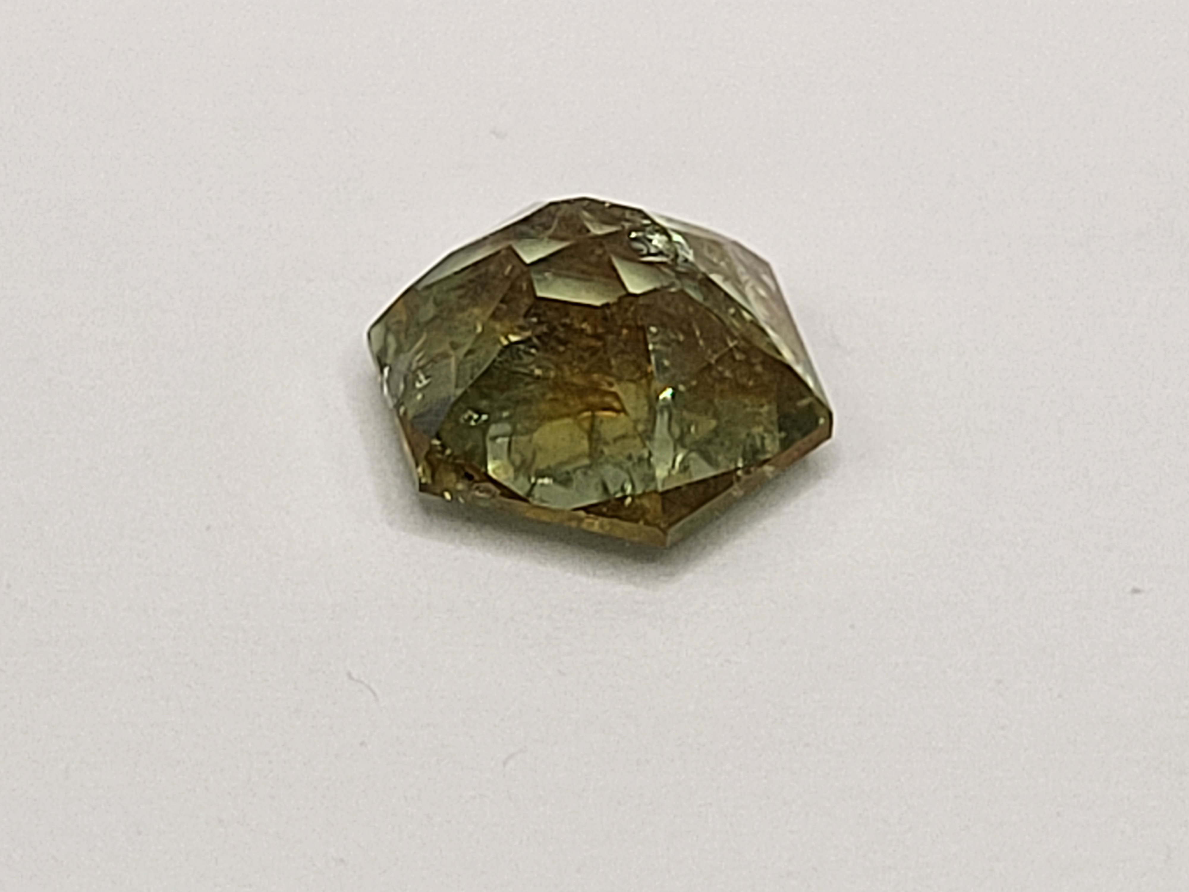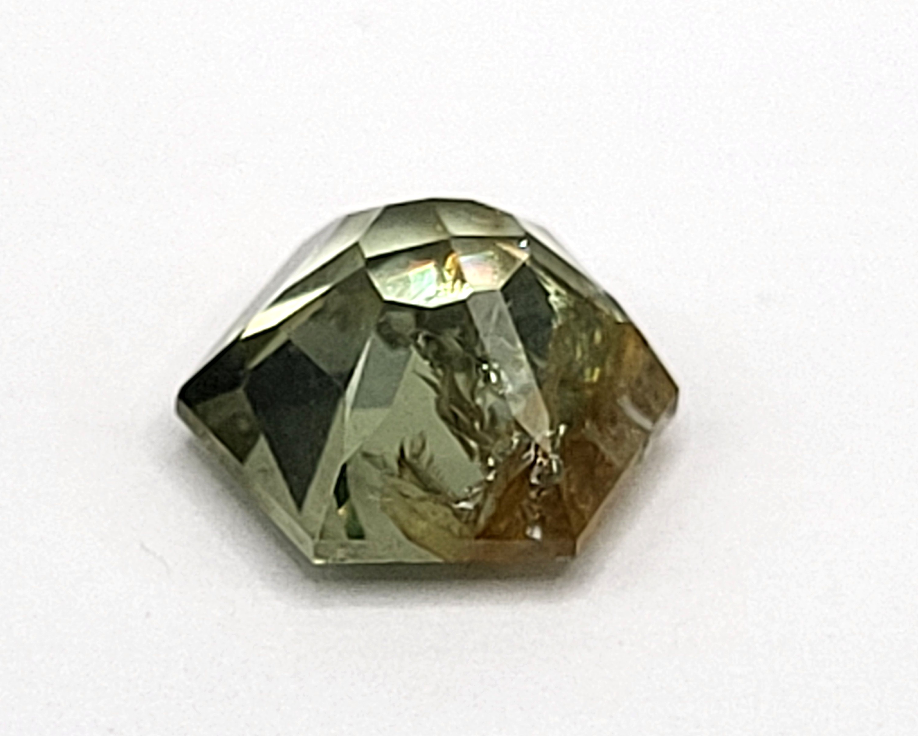 Mineral/Gemstone: Genuine Corundum Sub-Category/Color: Sapphire Geographic Origin: Montana, USA State:Loose, Cut & Faceted Weight: 1.58 CTState: Loose, Cut & Faceted Unheated and unapologetically bold, this 3.25 ct Montana sapphire showcases a striking bi-color blend of yellow and green. Cut into a polygonal form that defies convention, it reflects light with angular confidence and organic depth. The color zoning is deliberate and dramatic—like spring meeting summer in mineral form. With no heat treatment, its natural character remains untouched, making it a gem This item is brand new and offered for sale at auction by a manufacturer or individual consignor. The item is in new condition with only the slight possibility of evidence of storage or handling for sale preparation. 1. All weights, sizes, measurements, as well as the color or clarity of any gemstones or diamonds mentioned in the titles, descriptions, introductions, notes or anywhere in the auction catalog shall be considered “approximate” regardless of the inclusion of the word “approximate” or any similar adjective. 2. Props used to aid in photography are NOT included in any lot, unless specified in the title and/or description.of geological integrity and visual intrigue. A statement piece for those who favor the unexpected or a fabulous conversation piece for the collector. Admin: BK7/birr #MontanaSapphire #UnheatedSapphire #AmericanMinedGem #RareSapphireFind #PentagonCutGem #BlueGemstone #CollectorGem #EthicallySourced #GemstoneWithCharacter