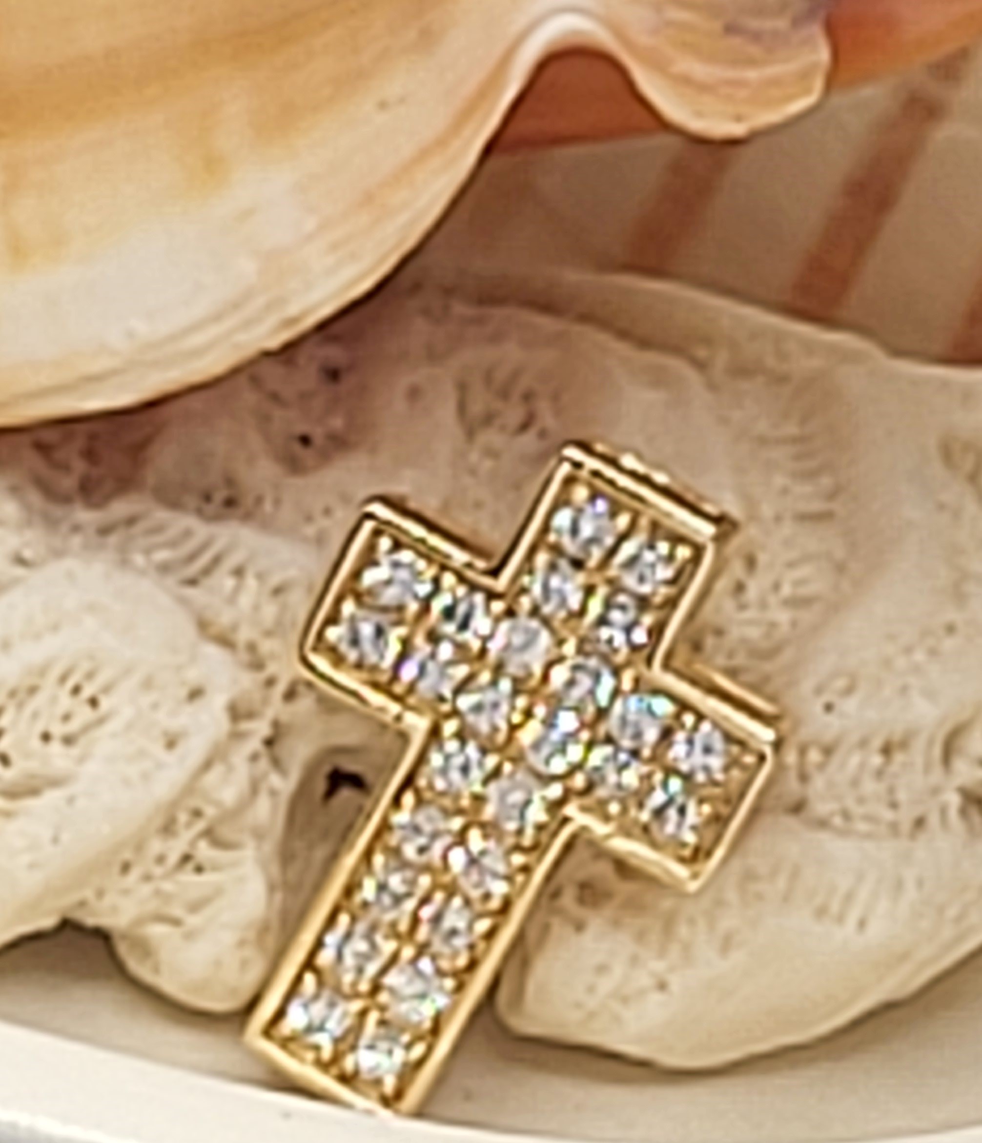 Setting: 14K Yellow Gold Main Gemstone: Genuine, Natural Diamond Dimensions: 1″x5/8″x2.25mm This glittering pendant has a slide-style bail with an approximate 2.2mm opening. This is a 14 karat yellow gold religious pendant that is set with nearly a carat (.99 carats total weight) of round, brilliant, I color, SI2- I1 clarity diamonds. The pendant is approximately 1″L x 5/8″W x 2.25mm thick. This is a pendant only and does NOT include a chain. This is a brand new item with manufacturer’s approval to sell in a public auction. It is in excellent condition, but may have fine scratches from shipping or storage. Admin: G11241/18tt 1) All weights, sizes, measurements, as well as the color or clarity of any gemstones or diamonds mentioned in the titles, descriptions, introductions, notes or anywhere in the auction catalog shall be considered “approximate” regardless of the inclusion of the word “approximate” any similar adjective. 2) This item is brand new and offered for sale at auction by a manufacturer or individual consignor. The item is in new condition with only the slight possibility of evidence of storage or handling for sale preparation. 3) Props used to aid in photography are NOT included in any lot, unless specified in the title and/or description. 4) This is a pendant only and does not include a chain. #DiamondCross #14KGold #FaithJewelry #StatementPendant #BidfairStyle #JewelryGoals #GiftIdeas