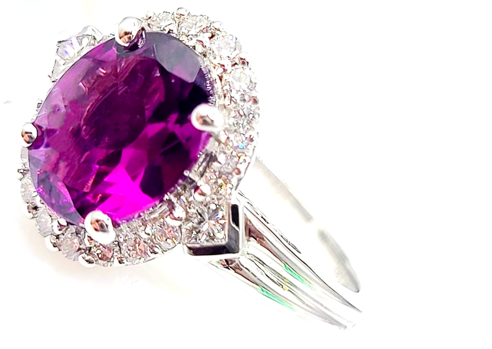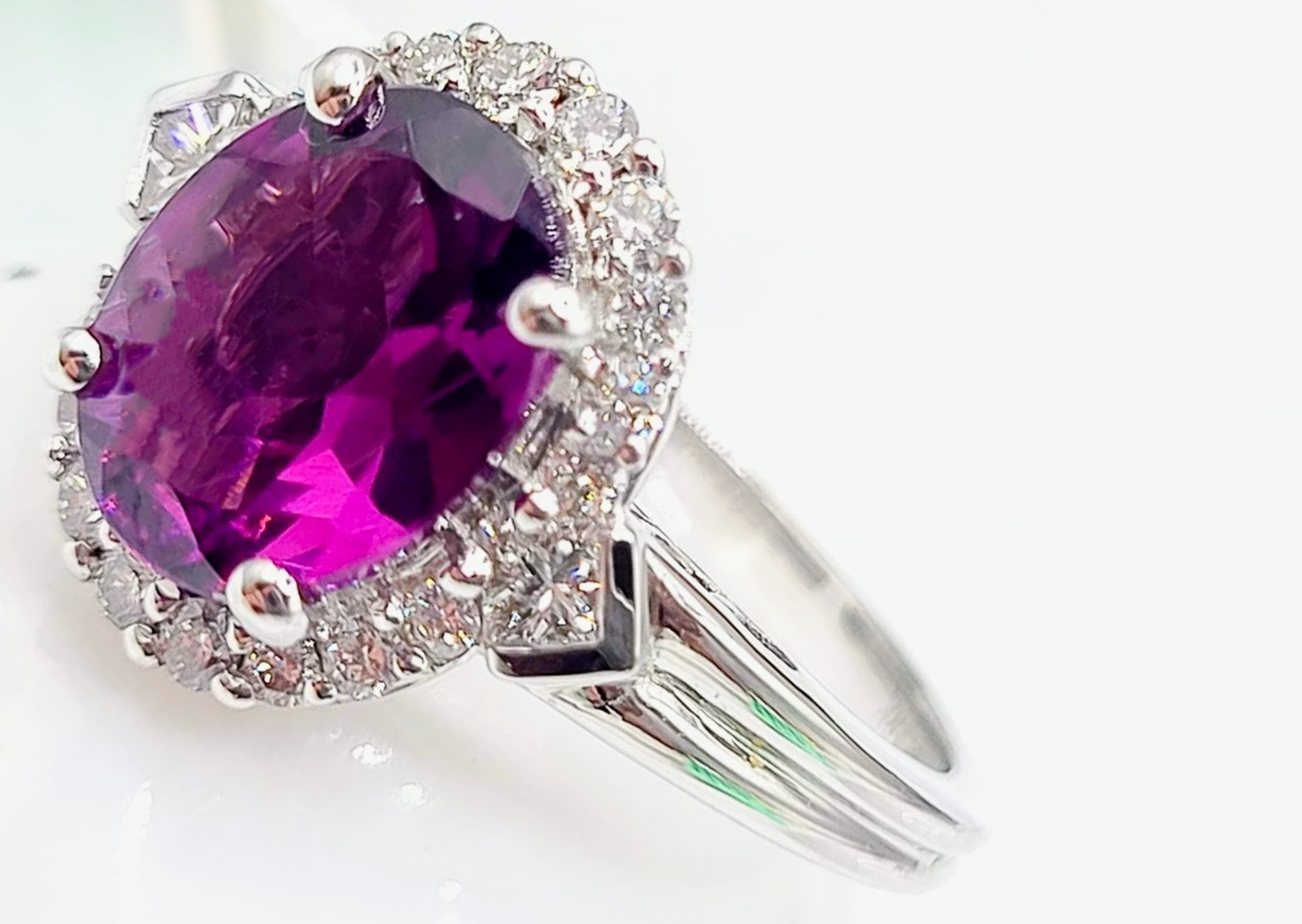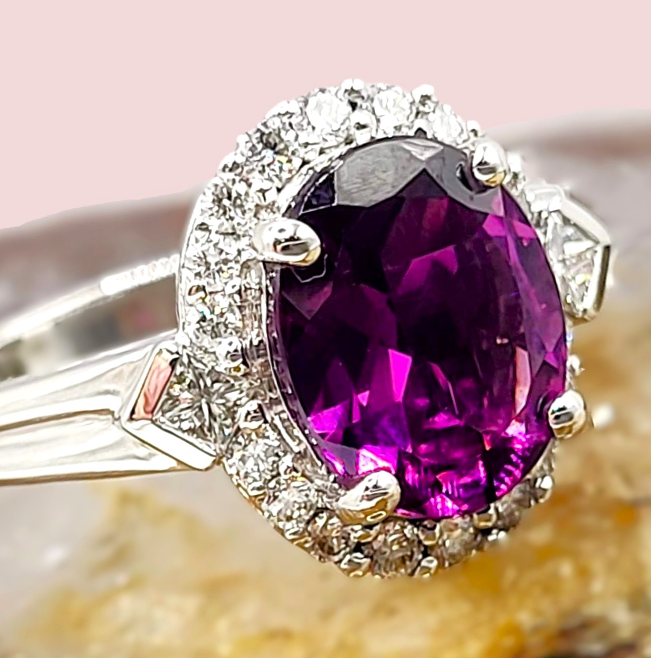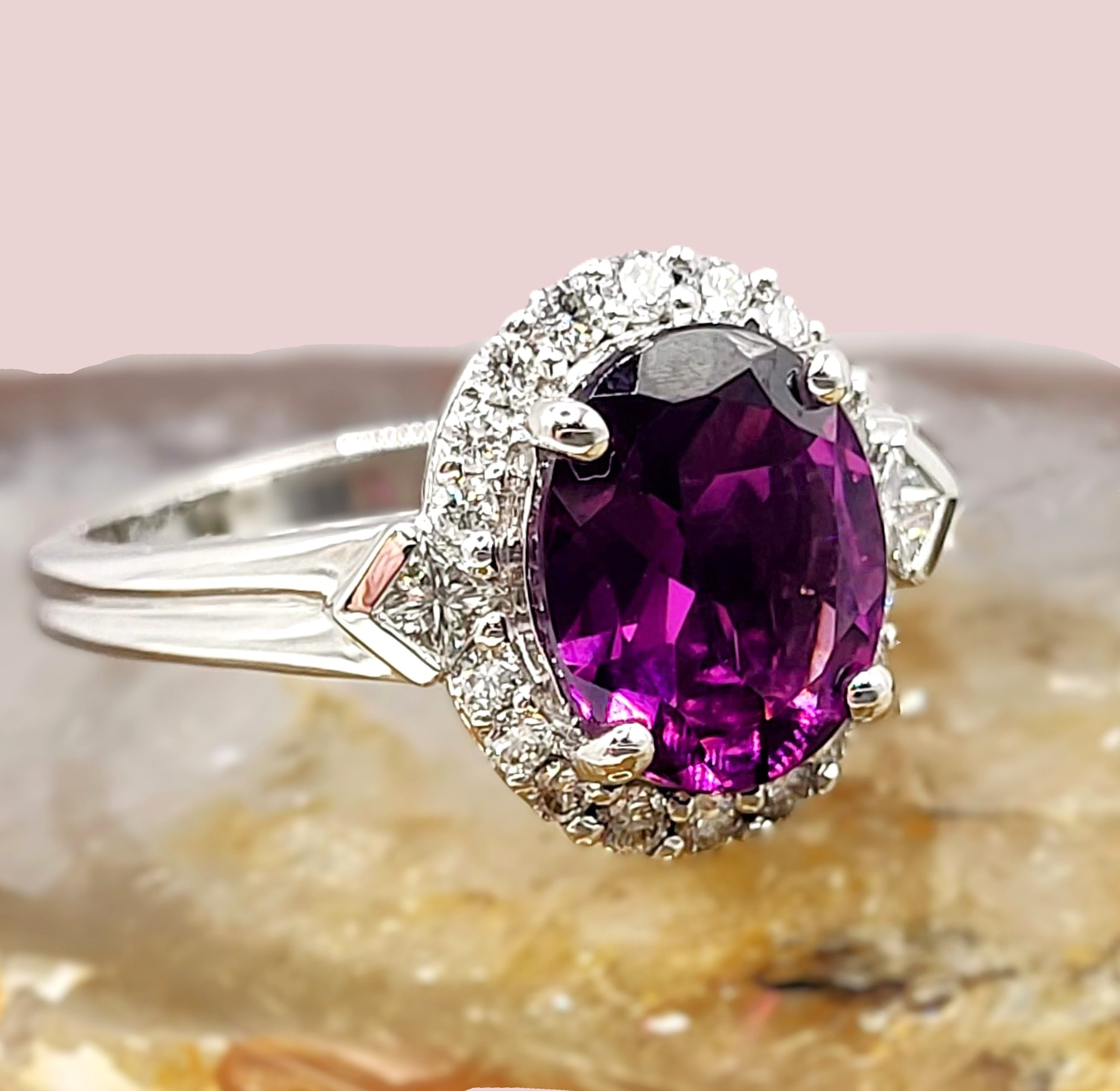 #BishopsGarnet #PurpleGarnet #DiamondHalo #FineJewelry #LuxuryRing #BidFairTreasures #CollectorGem #DistinctiveDesign #RareBeauty #MalawiGarnets #MogukRubies