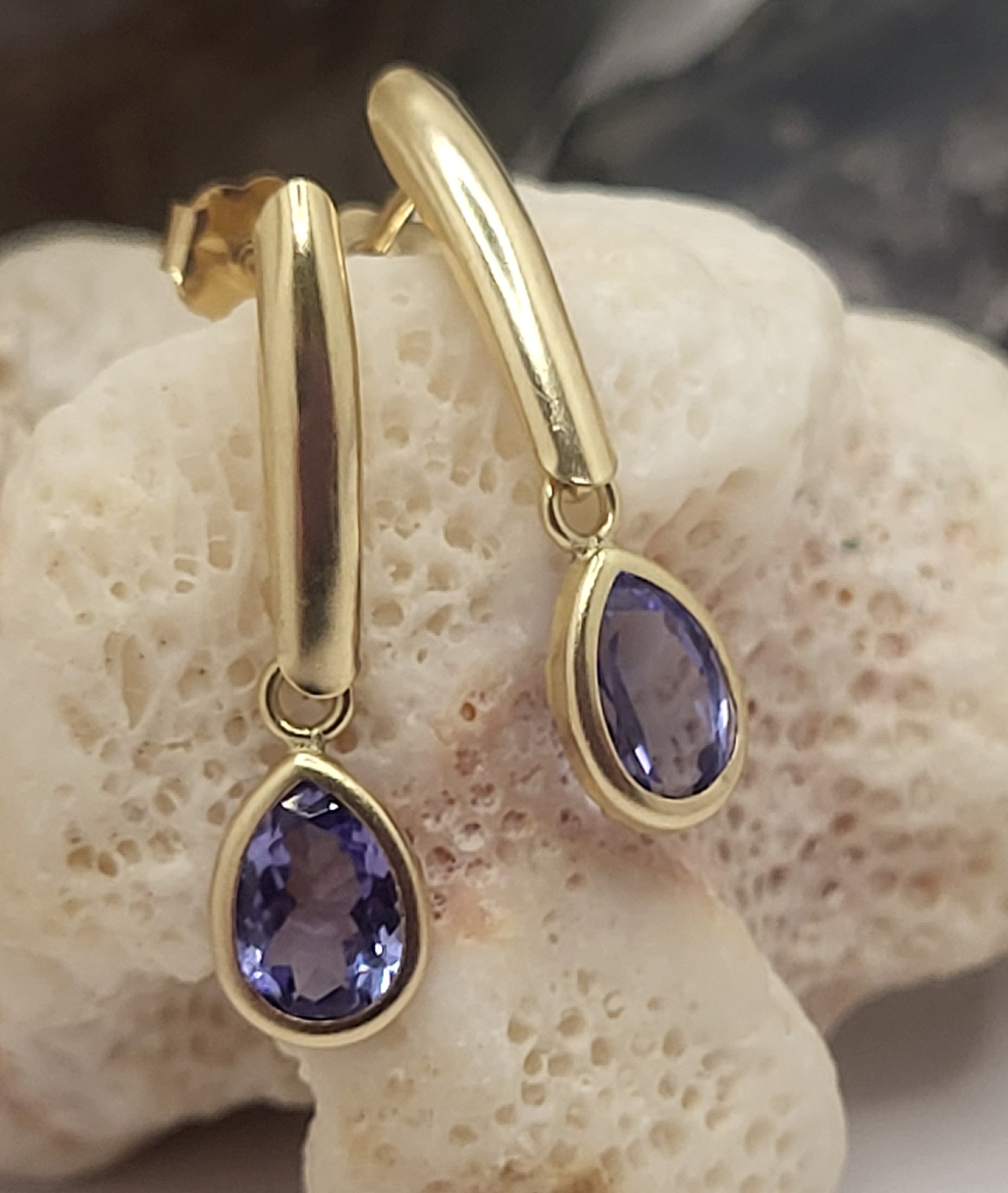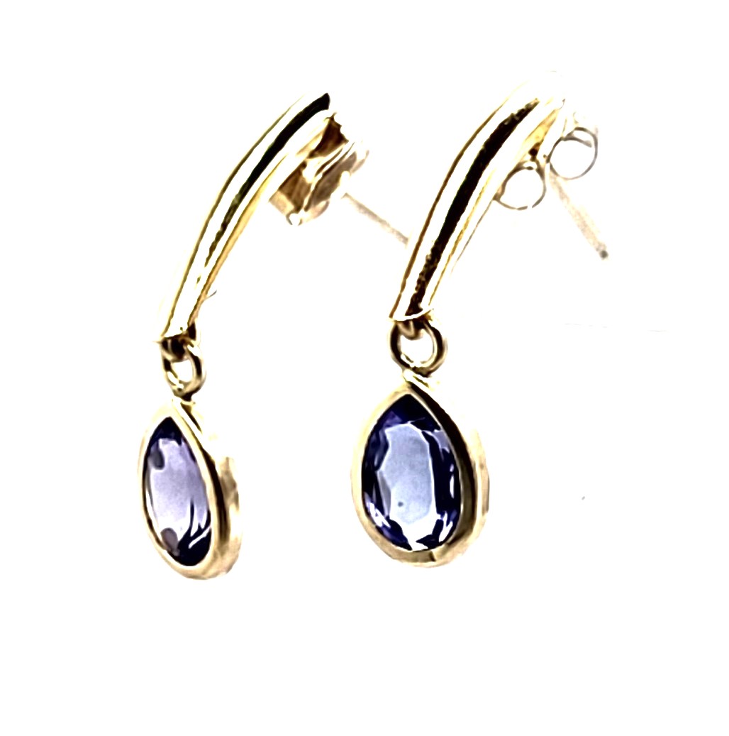 Setting: 14K Yellow Gold Main Gemstone: Genuine Tanzanite Closure: Posts and Friction Backs This pair of casually elegant earrings has 1.30 carats total weight of pear-cut, genuine tanzanite and hang approximately 7/8″ . They attach to the earlobe with posts and friction backs. Admin: G11241/31lrt 1) All weights, sizes, measurements, as well as the color or clarity of any gemstones or diamonds mentioned in the titles, descriptions, introductions, notes or anywhere in the auction catalog shall be considered “approximate” regardless of the inclusion of the word “approximate” or any similar adjective. 2) Props used to aid in photography are NOT included in any lot, unless specified in the title and/or description. 3) This is a brand new item with manufacturer’s approval to sale in a public auction. It is in excellent condition, but may have fine scratches from shipping or storage.
