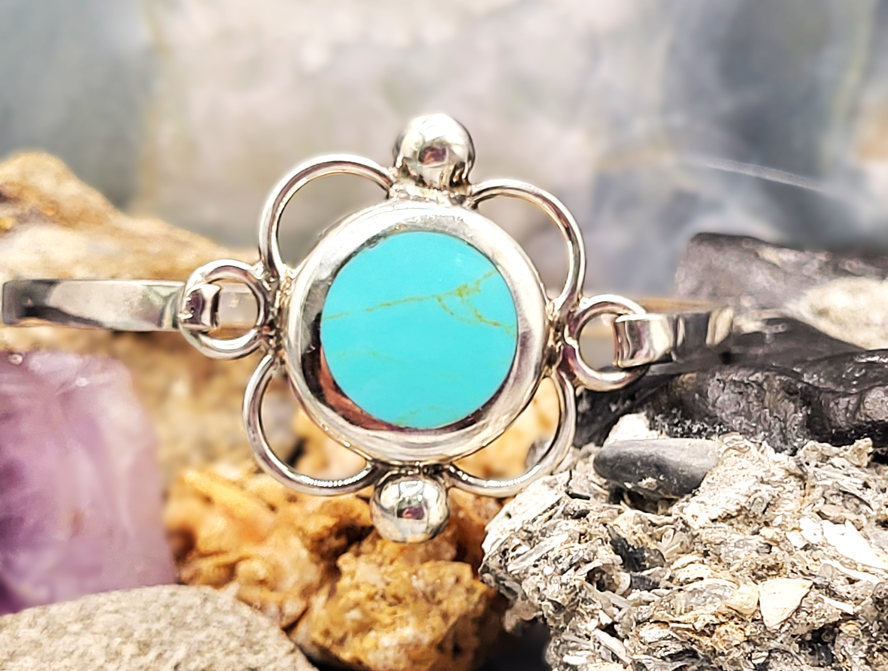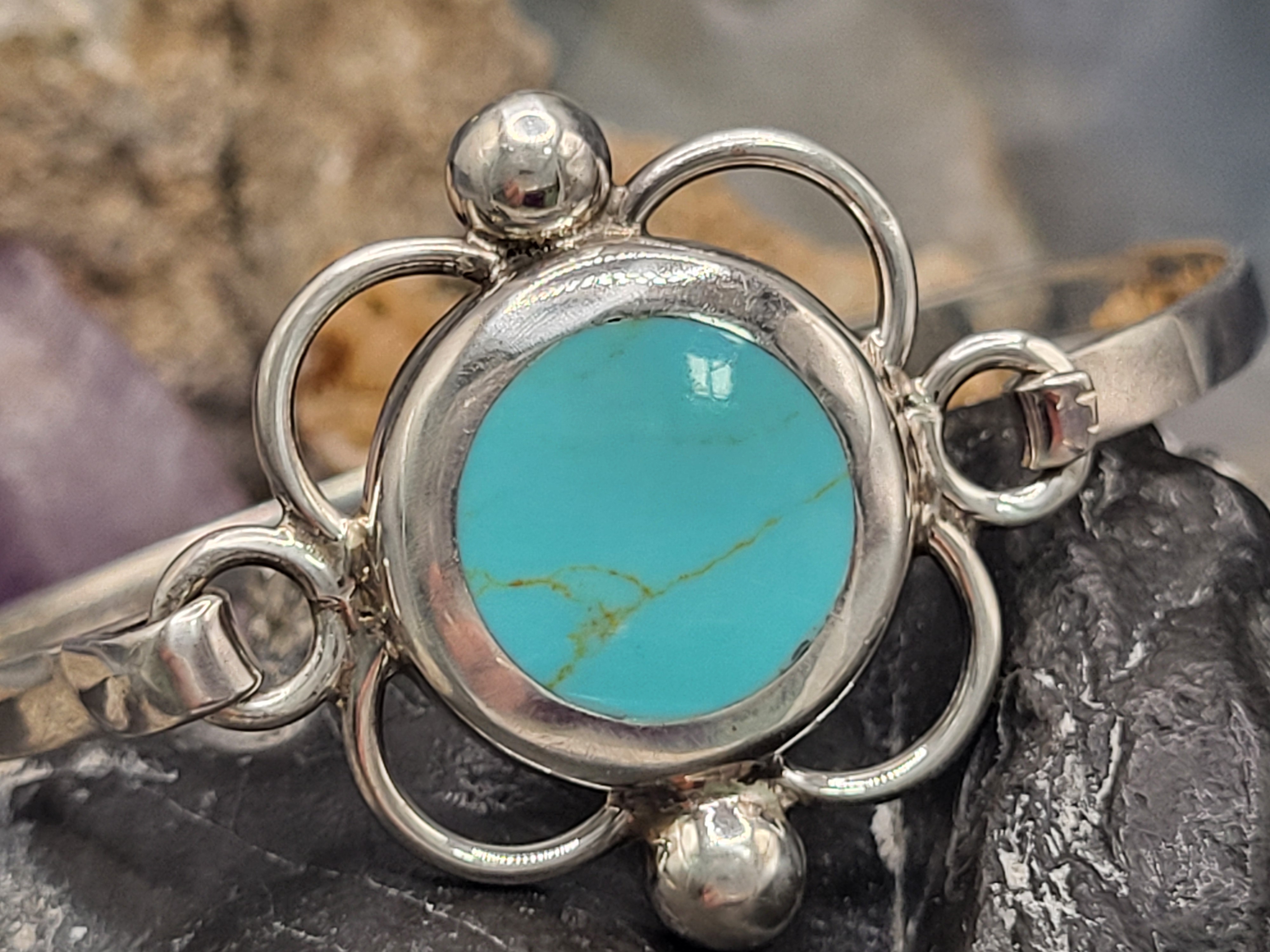 Crafted from: Sterling Silver .925 Main Gemstone: Turquoise Size: Designer/Hallmark: Turquoise Mine Origin:Unknown. Resembles Sonoran Gold turquoise This is an estate item and the consignor is unsure of where he purchased this bracelet for his late mother. He recalls it may have been while on business in southern Arizona from Nogales to Willcox in the late 1980’s. Admin: 33191/11.lg