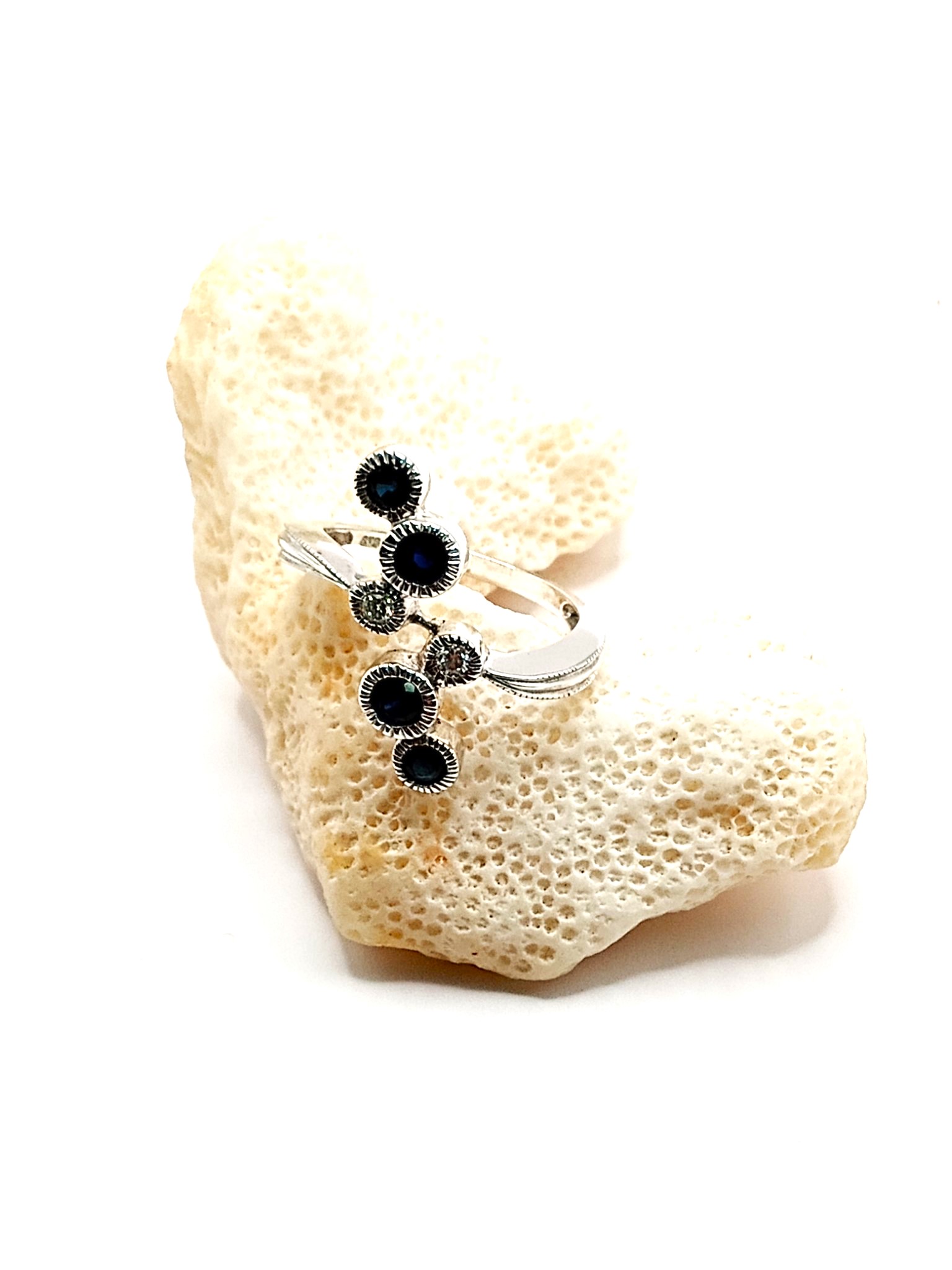 Setting: 14K White Gold Main Gemstone: Genuine Blue Sapphire Adjacent Gemstone: Genuine, Natural Diamond Size: US 6.75 Lots 46, 47, and 48 make great companions! This is a 14 karat white gold ring with approximately .67 carats total weight of round, faceted, genuine blue sapphires set into milgrain bezels with approximately .08 carats total weight round, brilliant-cut, H-I, SI2 clarity diamonds also in milgrain bezels forming a staggered line. The ring is size 6.75 and 3/4″ long between the knuckles. It can be sized for an additional charge. Please contact Bidfair Fine Jewelry for sizing details. 4.3g Admin: 33109/16lhg 1) All weights, sizes, measurements, as well as the color or clarity of any gemstones or diamonds mentioned in the titles, descriptions, introductions, notes or anywhere in the auction catalog shall be considered “approximate” regardless of the inclusion of the word “approximate” or any similar adjective. 2) This is a brand new item that has been held in back stock. It is in excellent condition, but may have minor signs of storage, such as fine scratches or patina. 3) This item is eligible for appraisal by an independent appraiser (with qualifying credentials from GIA) without affiliation to Bidfair Fine Jewelry, at a discounted rate. Please contact Bidfair Fine Jewelry for more information on appraisals. 4) Props used to aid in photography are NOT included in any lot, unless stated in the title and/or description.