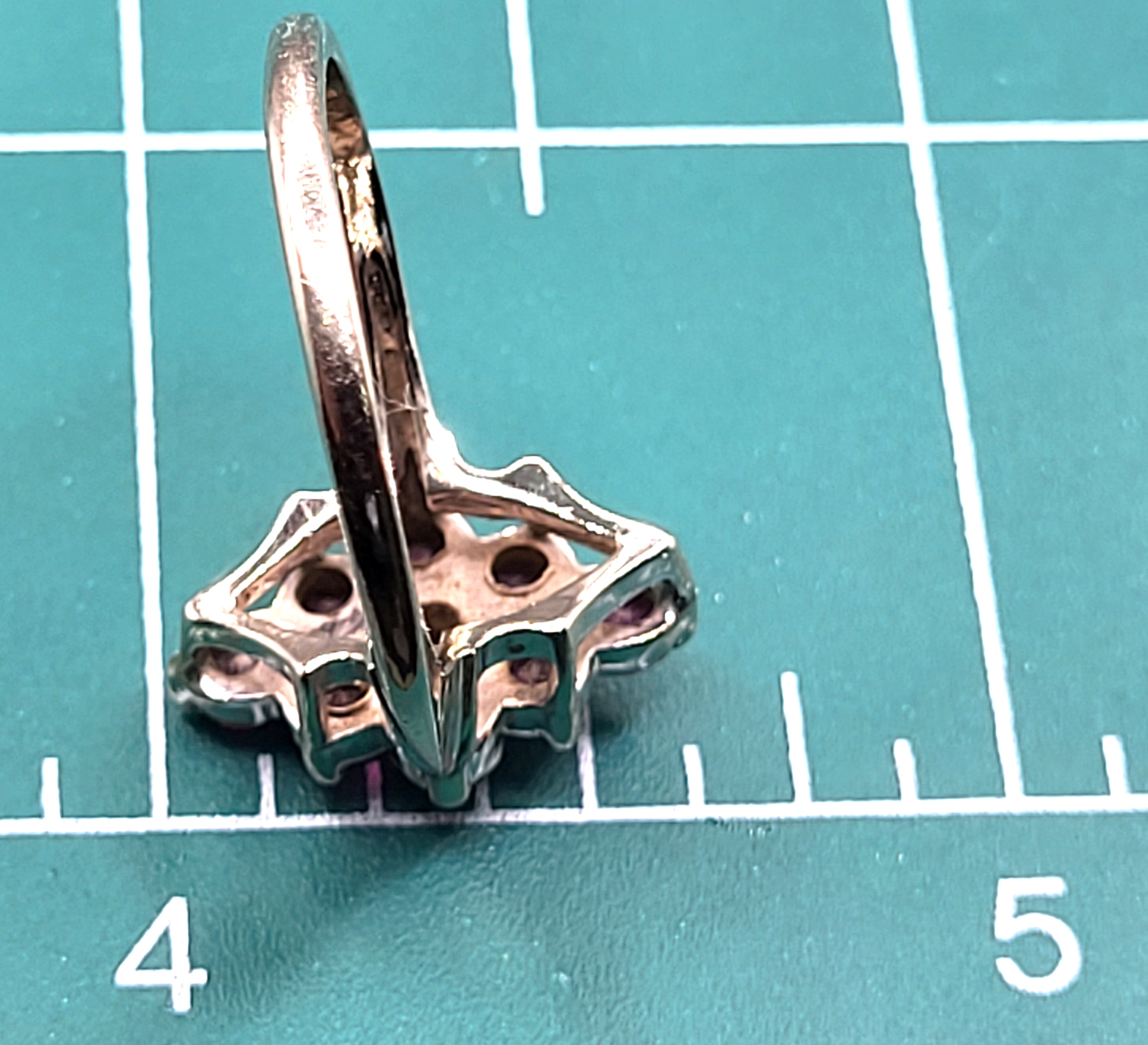 Setting: 14K White Gold Primary Gemstone: Genuine Ruby Size: US 7 This 14 karat white gold ring with approximately 1.00 carat total weight of round, faceted genuine rubies that are prong-set in a navette-shaped cluster. The ring is US size 7 and can be sized. It is from the estate of a local woman who is downsizing and told the story of when she bought this ring for herself in the late 1970’s (she thinks that is the correct time frame) in Nashville, TN. She said she fell in love with it because it reminded her of the Diamond Card soldier in “Alice in Wonderland)! She stated that she outgrew the ring decades ago, and it sat in a jewelry box almost forgotten and now she hopes another young lady will soon have it and love it just as much.3.58g Admin: PKD7160/23 1) This is an estate item in extremely good condition with almost no signs of wear, especially for its age. There may be some minor, fine scratches on the gold 2) All weights, sizes, measurements, as well as the color or clarity of any gemstones or diamonds mentioned in the titles, descriptions, introductions, notes or anywhere in the auction catalog shall be cosidered “approximate” regardless of the inclusion of the word “approximate” or any similar adjective. 3) Props used to aid in photography are NOT included in any lot, unless specified in the title and/or description. 4) This ring can be sized for an additional charge. Please contact Bidfair Fine Jewelry for more information.