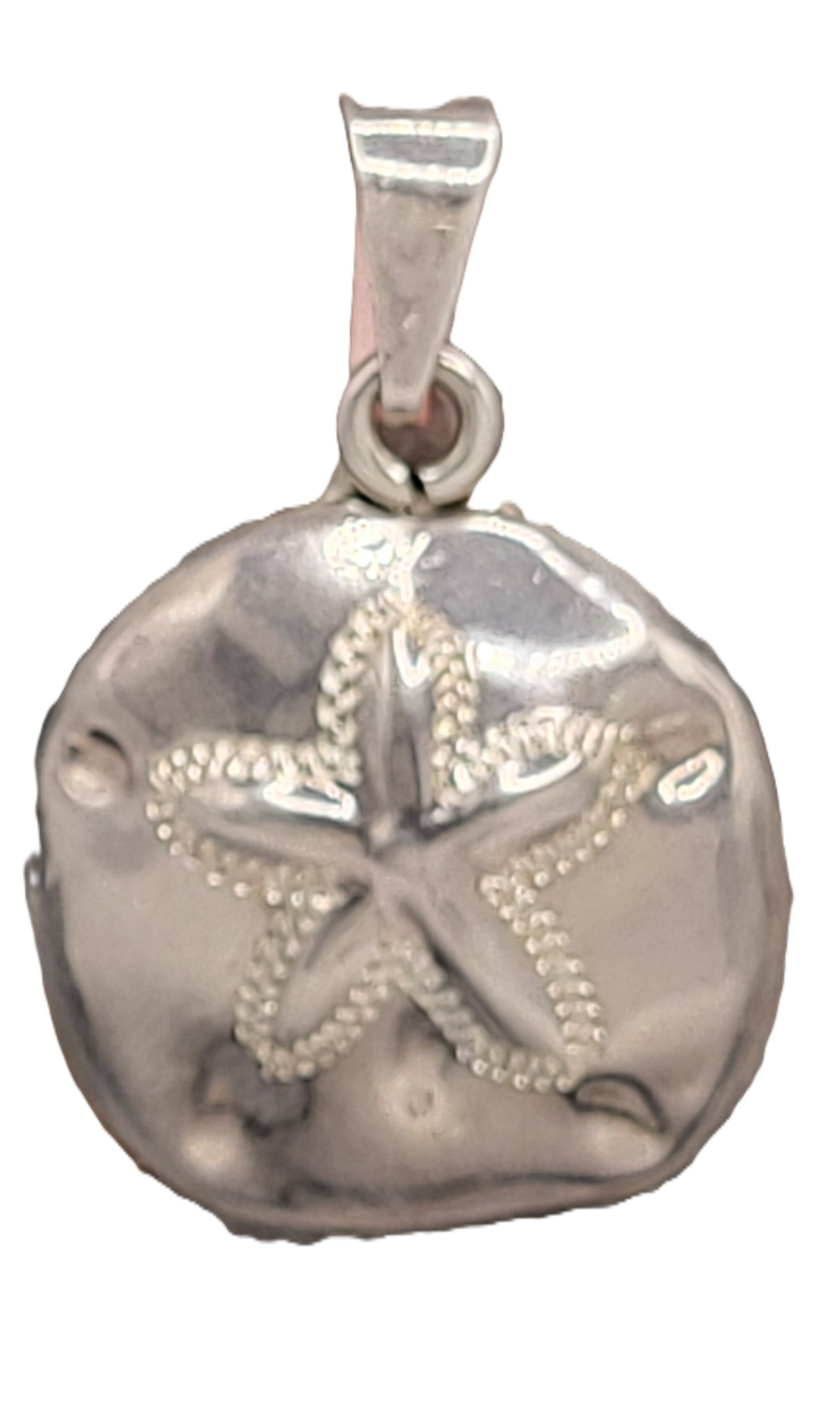 Die-Struck in: Sterling Silver .925 Size: 1.25″ Diameter Designer/Hallmard: TN-49, Taxco silversmith, Mr. N, 49th N Surnamed Silversmith in Taxco, Mexico. This is a vintage Taxco (TN-49) sterling silver (.925) semi-hollow pendant, circa early 1980’s. The pendant is approximately 1.25″ in diameter, excluding the bail. The die-struck sand dollar design is prominently displayed on the semi-dome of sterling silver with a hand-applied ‘bric-a-brac’ border. Paying attention to the details, the artisan placed “dimples” in the appropriate places to represent the five lunules found on the Five Slotted Sand Dollar. The pendant has a smooth backplate that is so well joined with the front, it is difficult to see that it is 2 pieces of sterling silver. The pendant has a large bail that can accommodate an approximate 5.5mm wide chain. The hallmark for this pendant is located inside the bail. PLEASE NOTE: The sand dollar pendant is not perfectly round, but nor is it “banged up” and dented as it may appear in some photos. There are five dimples on the face of the pendant that were intentionally made by the craftsman. The reflective shine of the polished silver creates the illusion of “pings” and colors from items nearby when the photos were taken. 12.68 grams. ForOfficeUse: 33120/11bn 1) This is a pendant only and does NOT include a chain. 2) This is an estate item that is in very good to excellent condition, with little to no scratches, dents, or patina. 3) Props used to aid in photography are NOT included in any lot, unless specified in the title and/or description. 4) All weights, sizes, measurements, as well as the color or clarity of any gemstones or diamonds mentioned in the titles, descriptions, introductions, notes or anywhere in the auction catalog shall be considered “approximate” regardless of the inclusion of the word “approximate” any similar adjective.