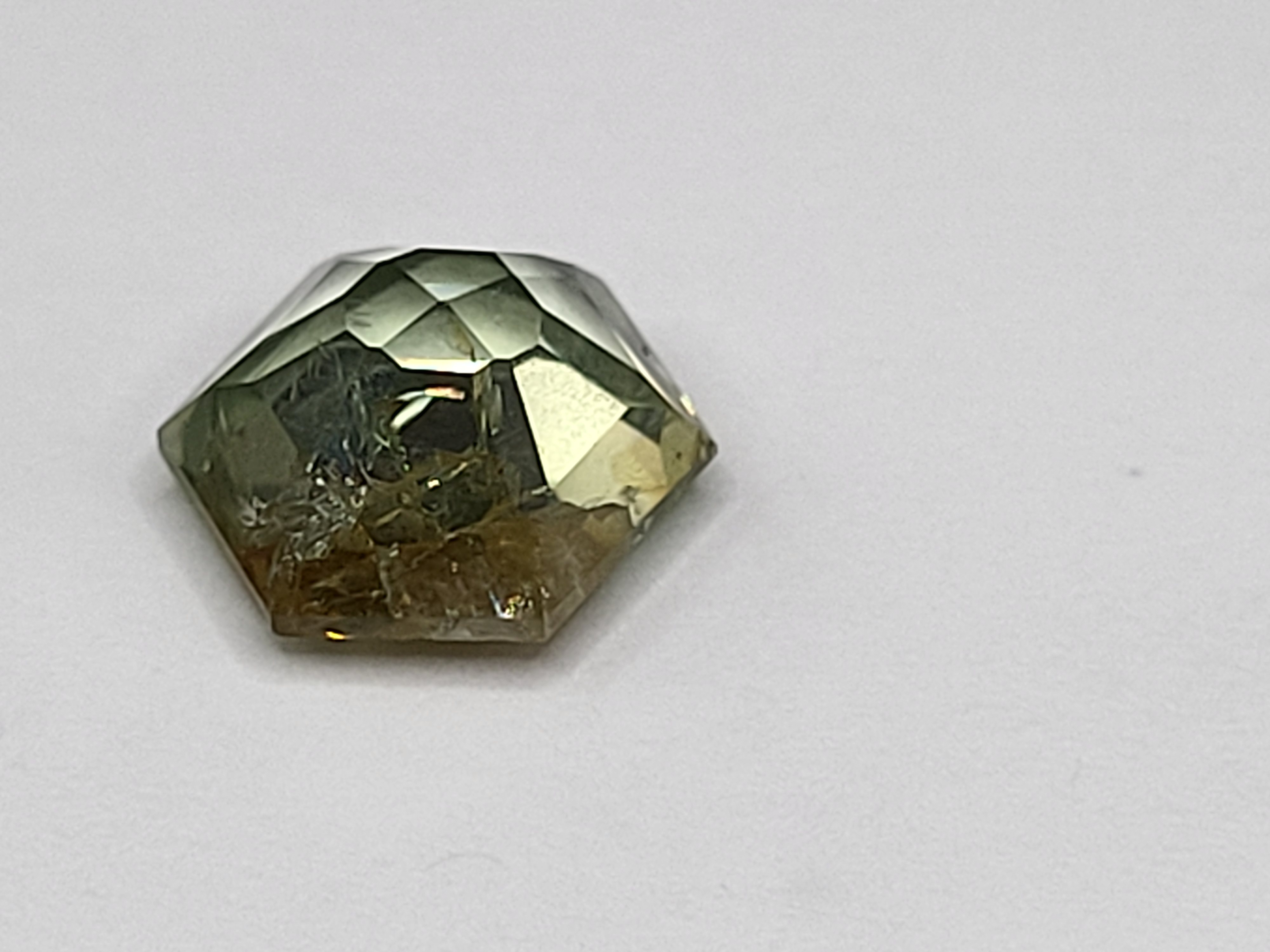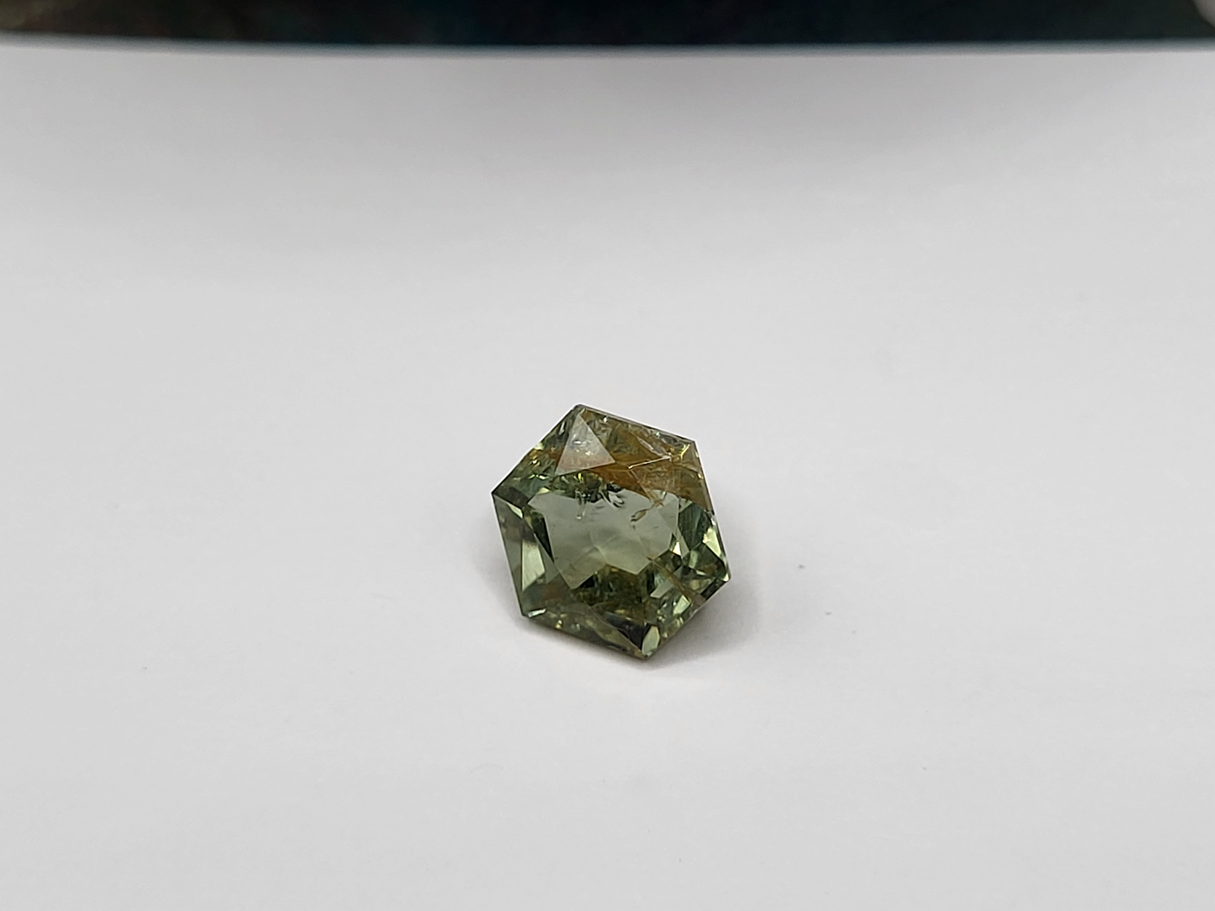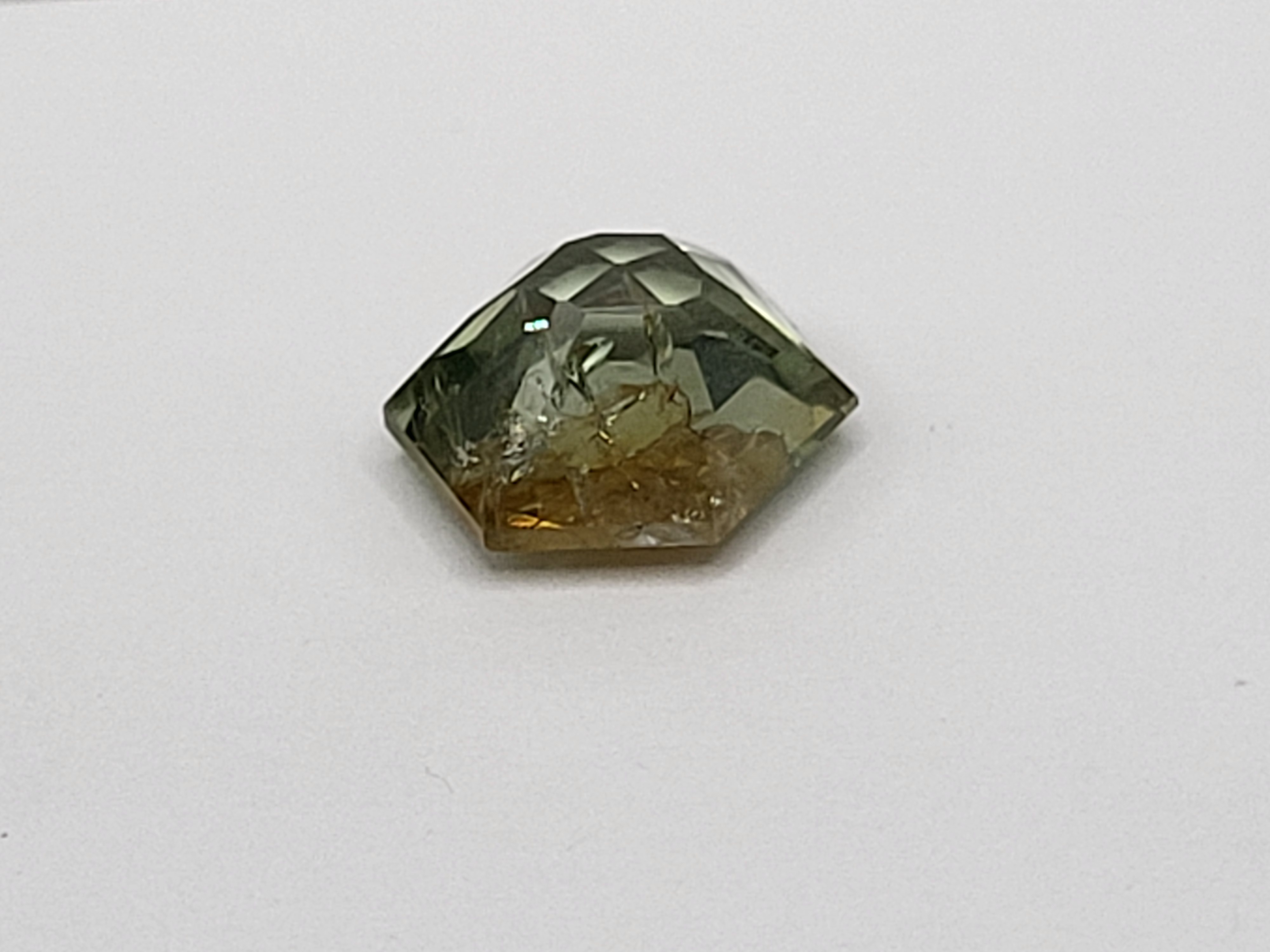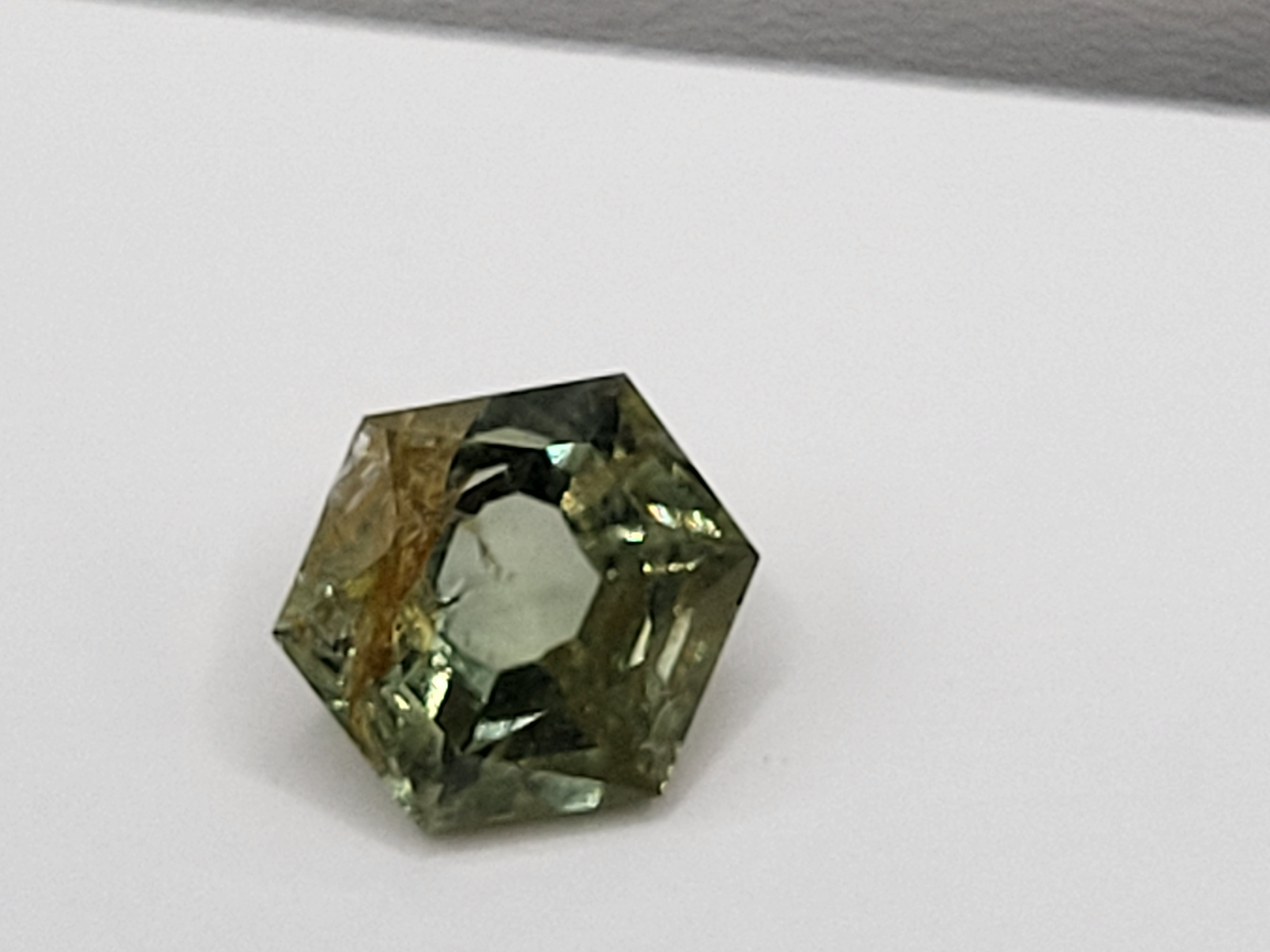 Unheated and unapologetically bold, this 3.25 ct Montana sapphire showcases a striking bi-color blend of yellow and green. Cut into a polygonal form that defies convention, it reflects light with angular confidence and organic depth. The color zoning is deliberate and dramatic—like spring meeting summer in mineral form. With no heat treatment, its natural character remains untouched and incredibly intriguing, making it a gem of geological integrity and visual inspiration. A statement piece for those who favor the unexpected or a fabulous conversation piece for the collector. Admin: BK7/birr