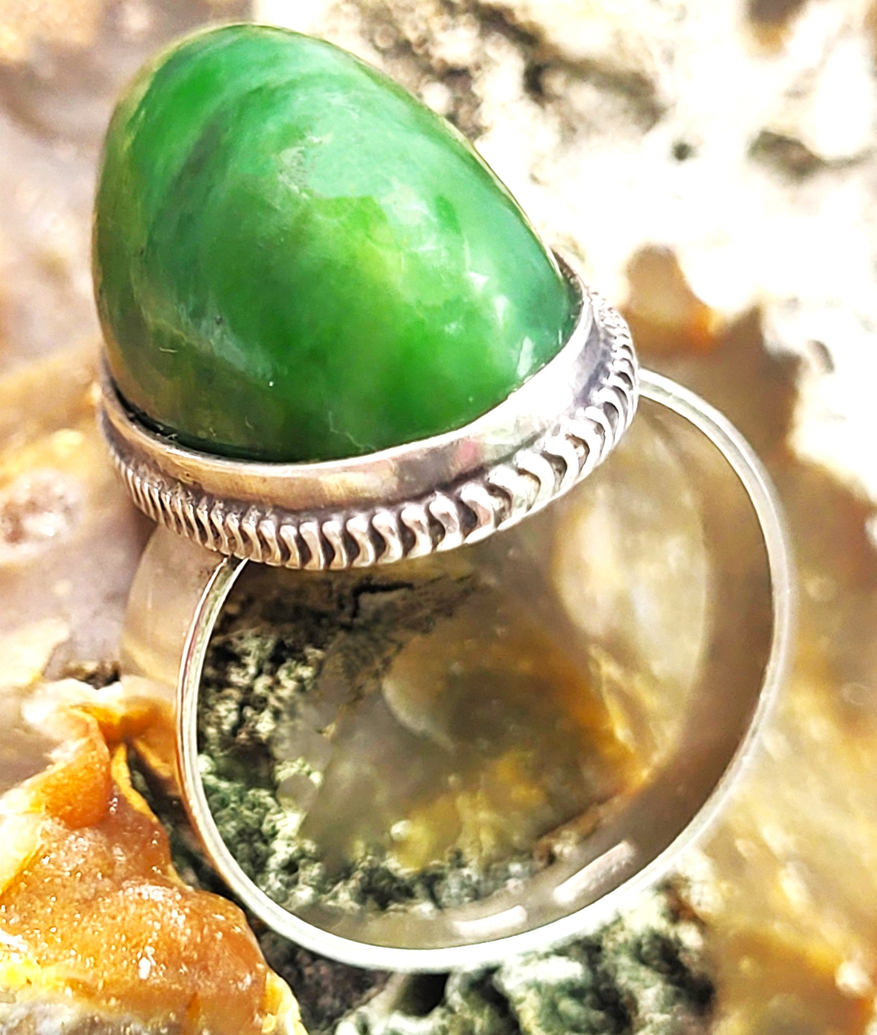 Soviet-Era Large Jade Cabochon Sterling Silver Ring