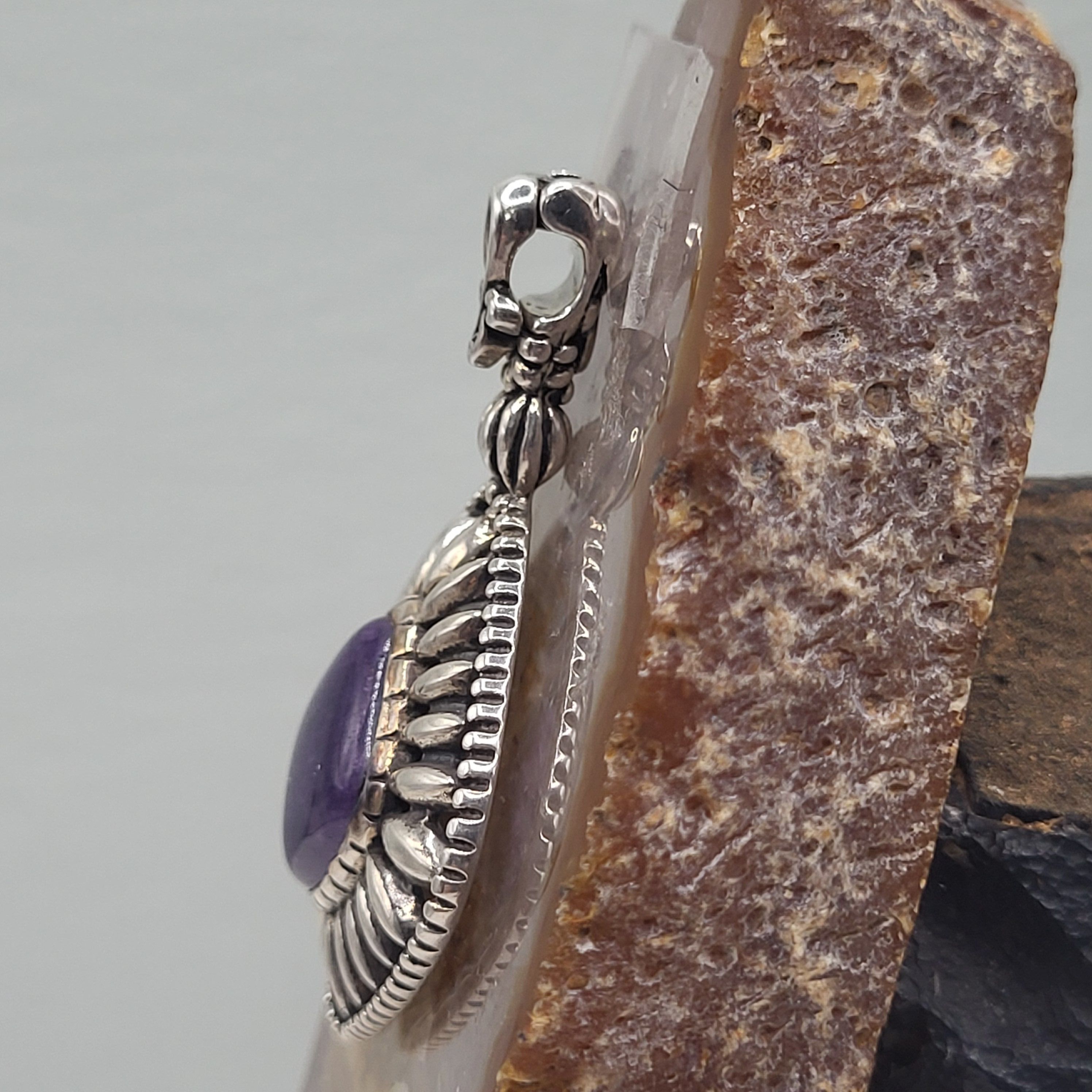 The square frame features a radiant floral motif with petal-like silver accents and beaded edges, while the bail is adorned with elegant scrollwork—signature touches of Carolyn Pollock’s Relios design.