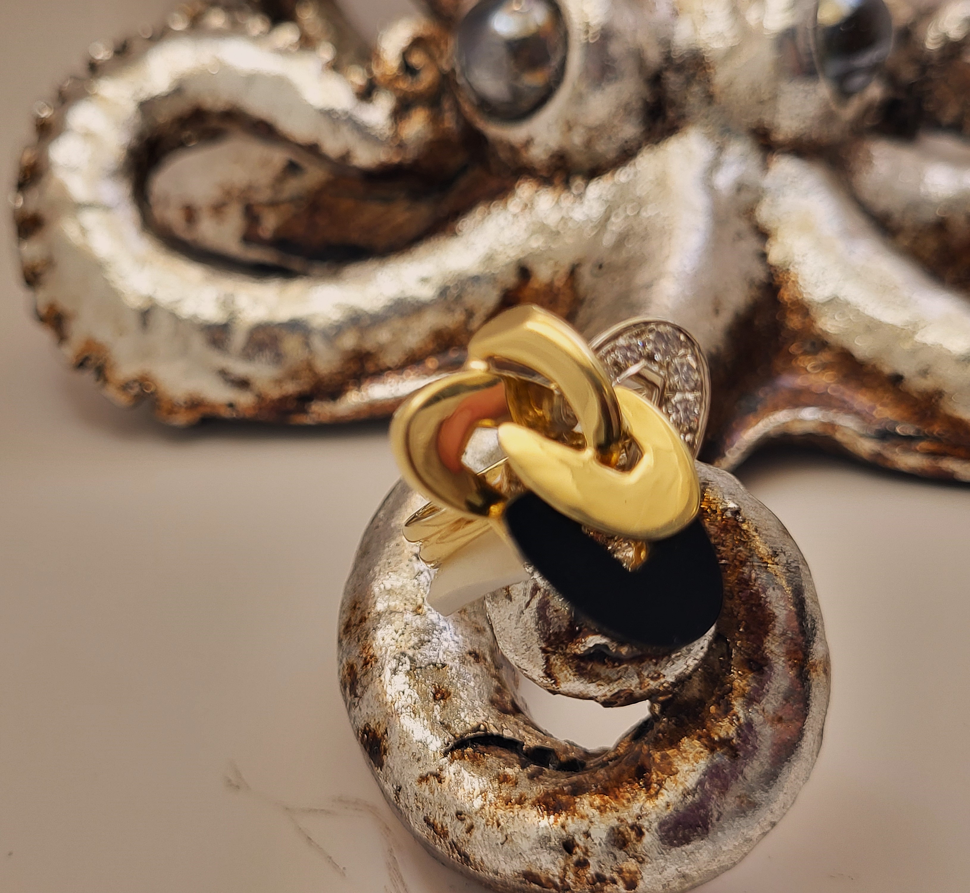 "Onyx In Orbit" is this ring’s given name. It must be a work of art! It really appears to always be moving like some superfast electrons around an atom!