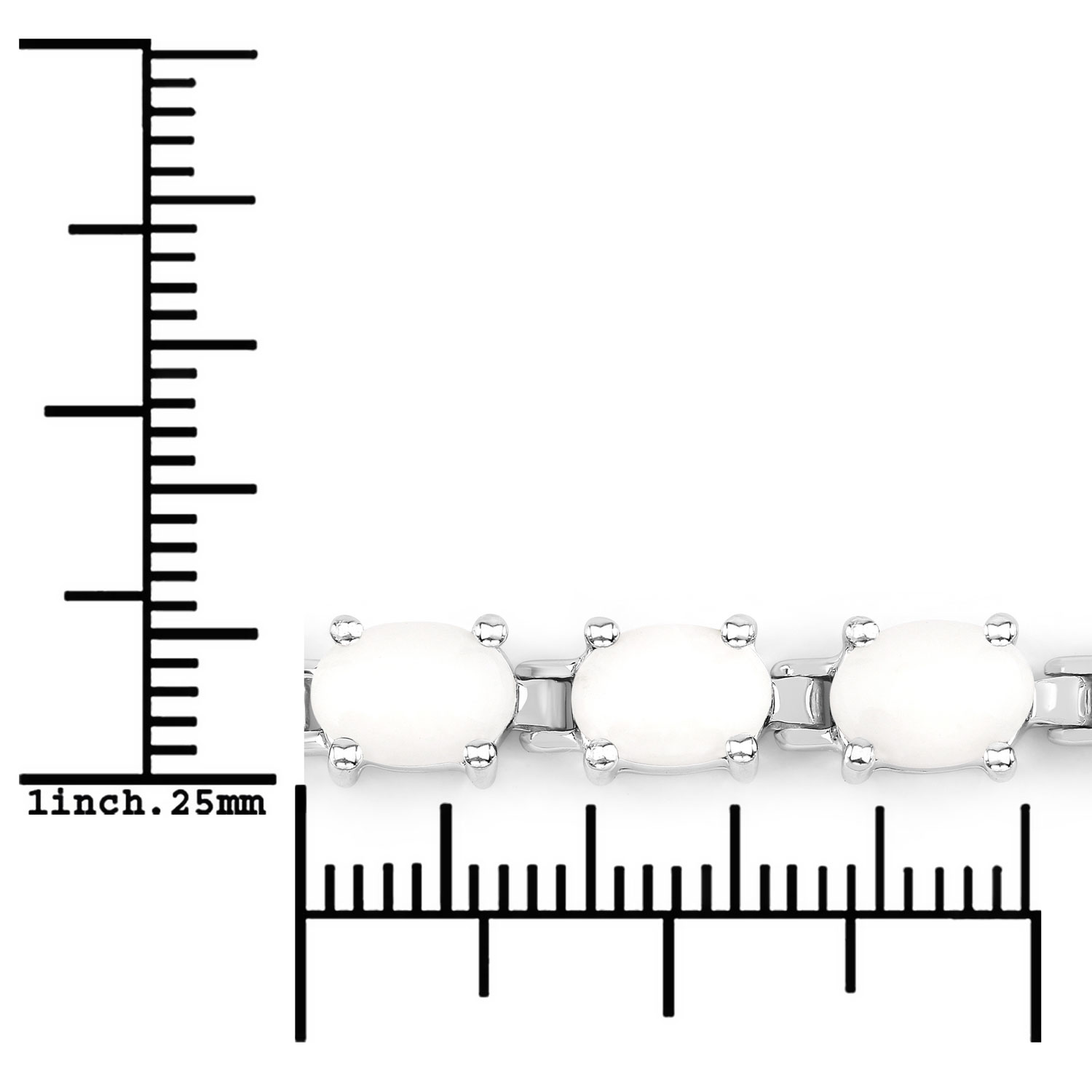 With 10.26 carats of genuine, oval cabochon, opals, this bracelet dances with iridescent fire. Each 7x5mm opal is prong-set on sterling silver hinged links, making it a luminous piece that shifts with every glance—mystical, modern, unforgettable. The bracelet is 7" long and closes with a hidden box clasp that has 2 safety clips.AdminCode: Q/blp