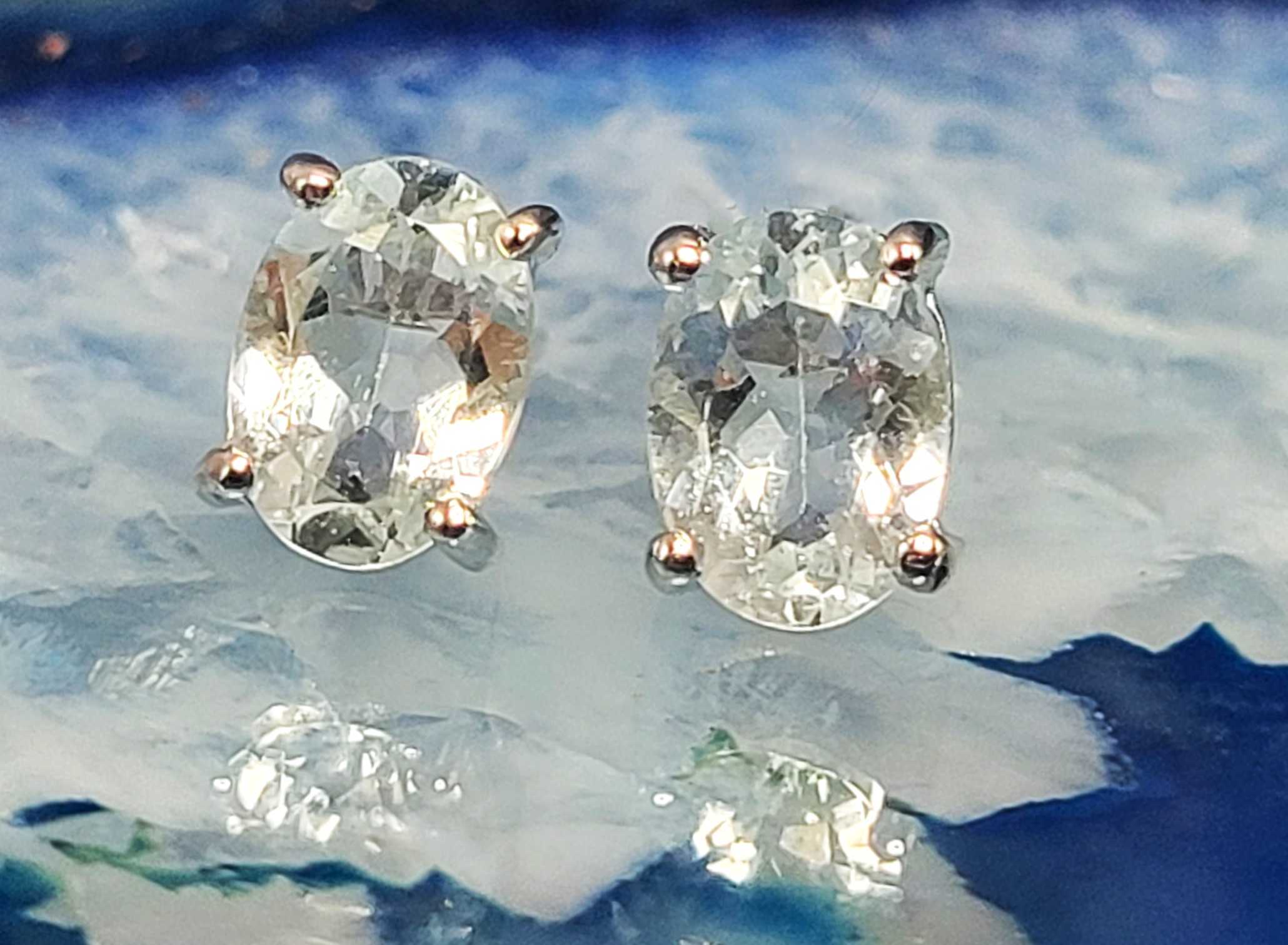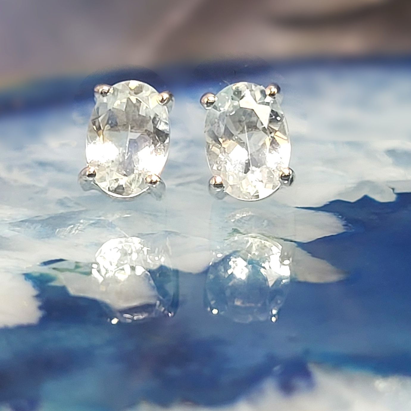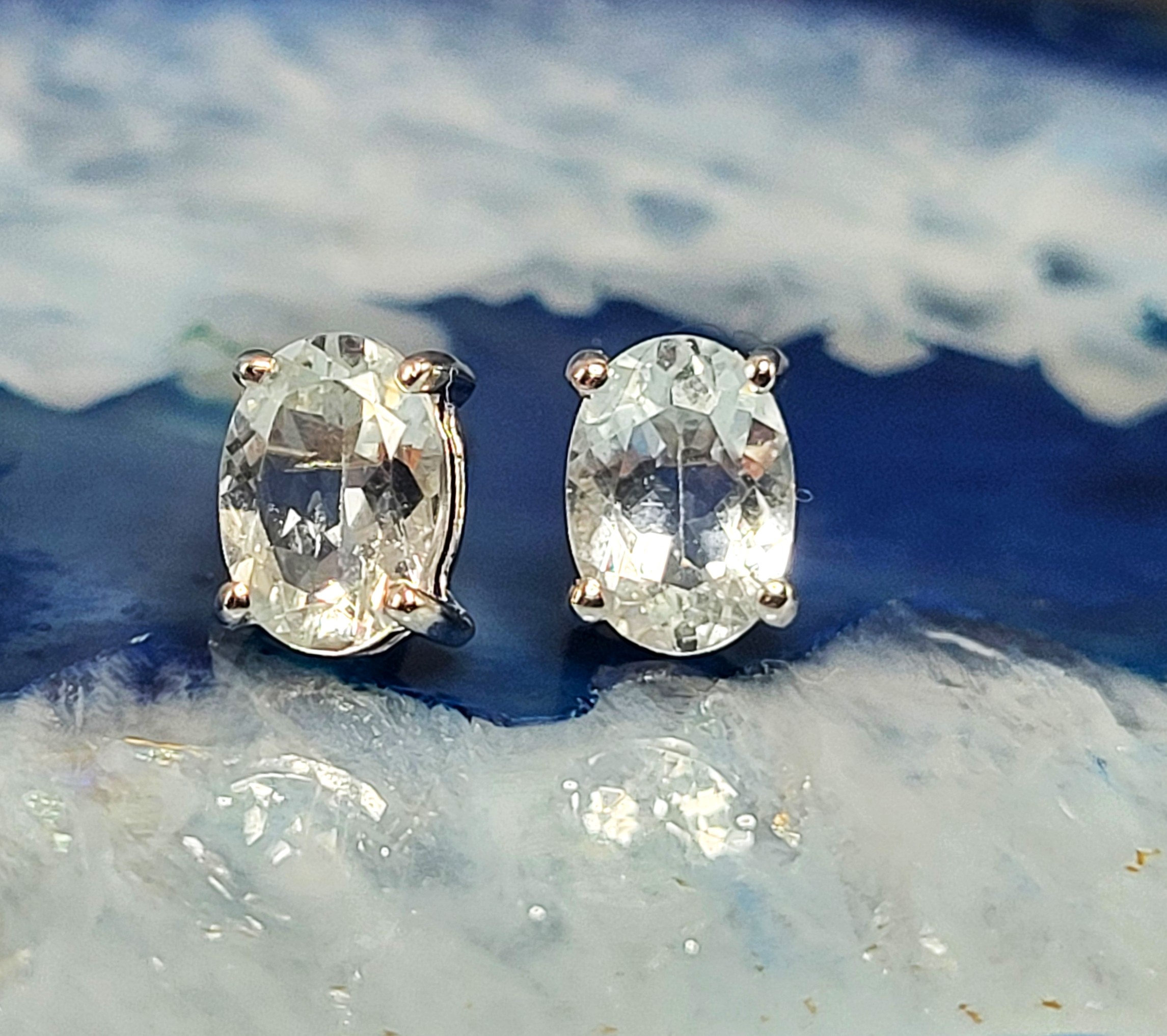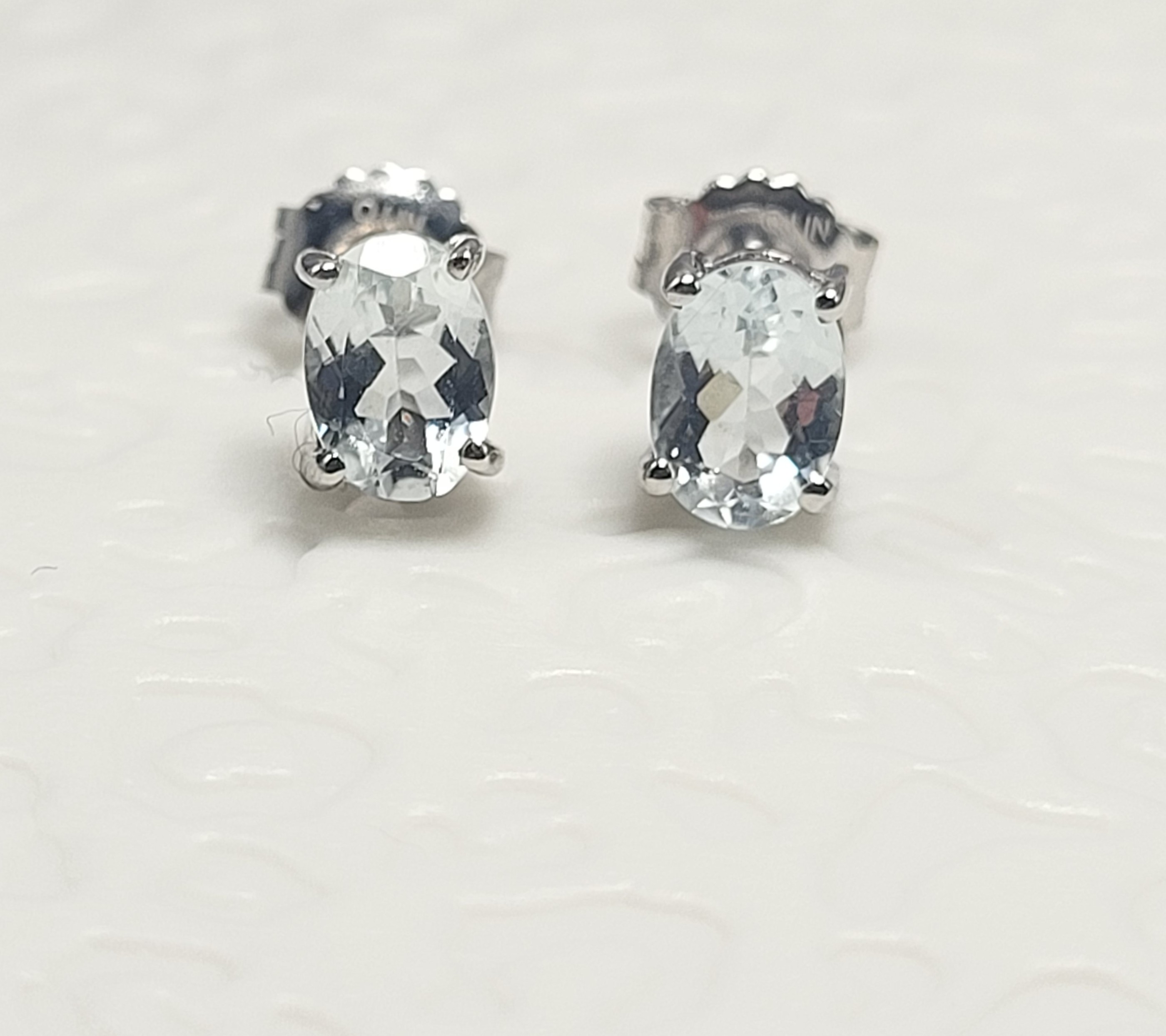 Light blue, sparkling, oval-cut, genuine aquamarines, measuring 7mm x 5mm each are featured in these sterling silver solitaire earrings. The prong-set, 1.50 carat total weight aquamarine earrings attach to the earlobes with posts and friction backs. Please read more auction details below. AdminCode: 98715/4-ng