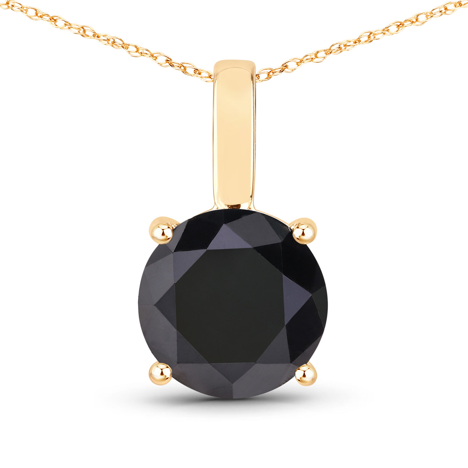 A solitaire 3.12 carat, round, Earth-mined, black diamond* beautifully contrasts with it’s 14 karat yellow gold four prong setting and solid bail. See more information below: AdminCode: NQSbpr/5is