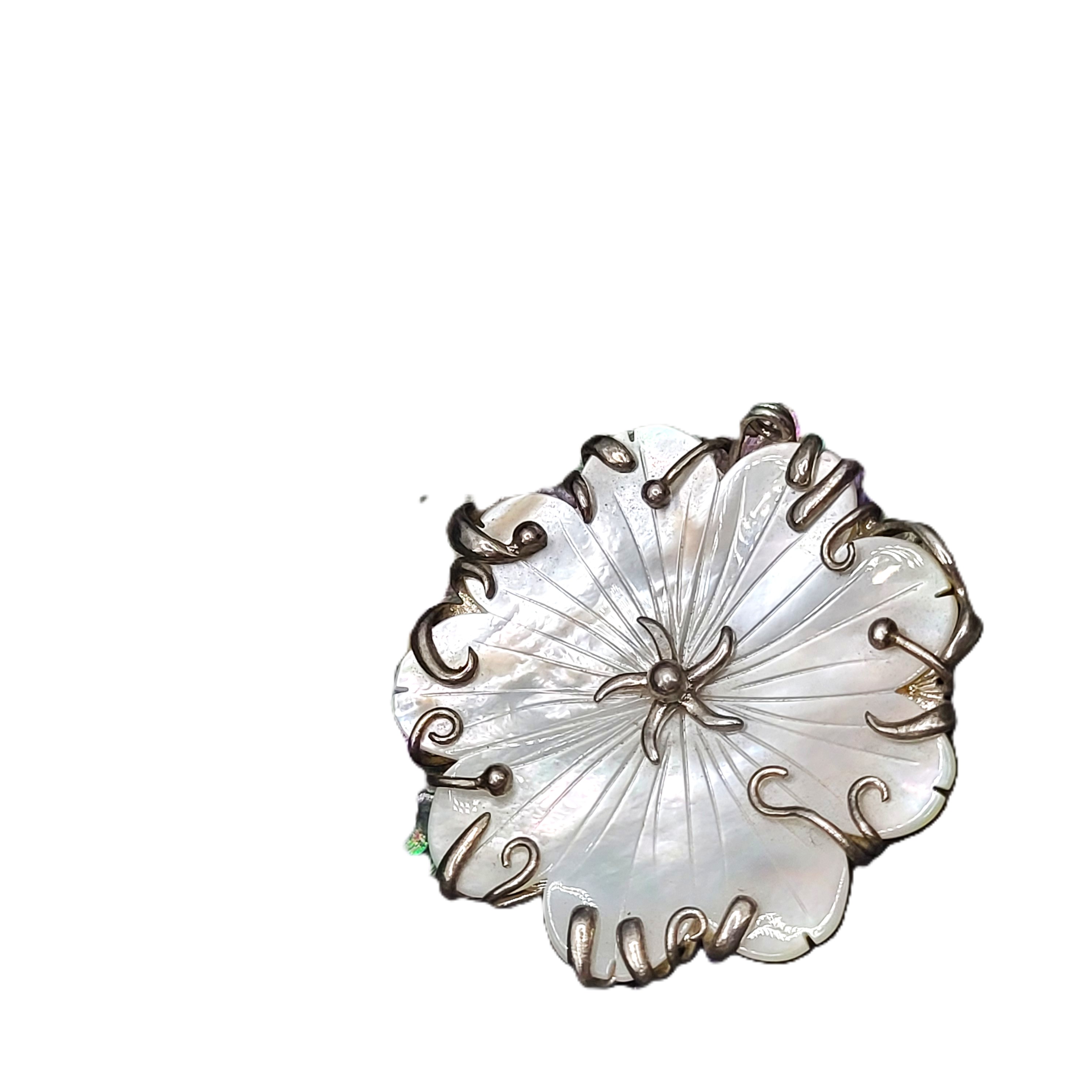 This beautiful sterling silver pendant is delighfully carved into a pansy-like flower design, complete with "nectar guides" in the shimmery petals. The flower is complete with a sterling silver stigma in the center. Graceful sterling silver ‘tendrils’ gather along the edges of the flower petals. This lovely flower is equipped with an ample sterling silver hidden bail that can accommodate an approximate 5mm wide chain. Admin Code: KJISB/lr