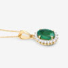 The 1.20 carat oval-cut, genuine Zambian emerald contrasts so nicely with the .16 carats total weight of round, brilliant-cut, H-I color, I1 clarity diamonds in the sparkling halo of this pendant. An affixed ring at the top of the pendant holds a solid bail that is able to accommodate up to a 3mm wide chain.. See more information below. AdminCode: NQnis/lol.10