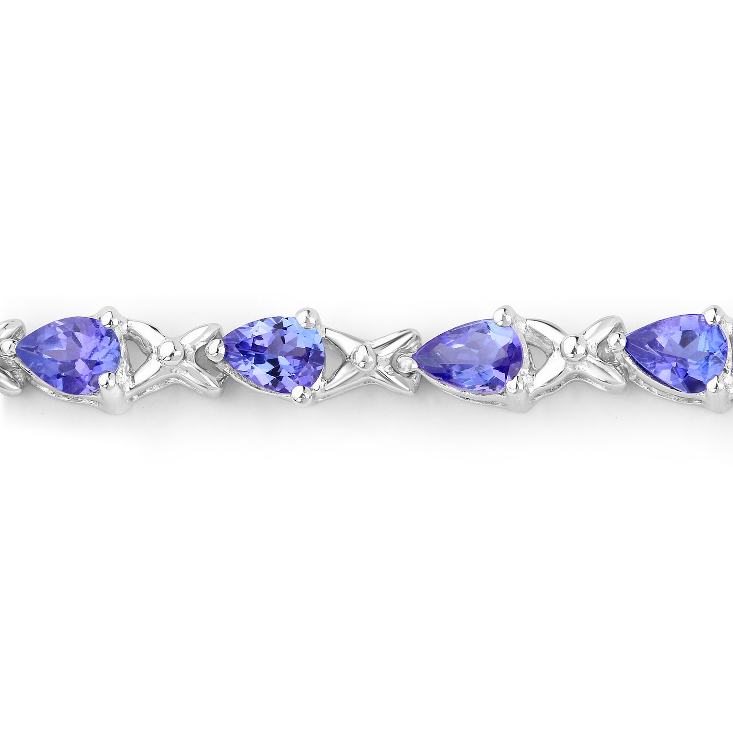 This is a great chance to get a beautiful piece of tanzanite jewelry for your everyday wardrobe at an incredible price! This sterling silver eternity bracelet features 3.08 carats of pear-cut, genuine light violet-colored tanzanites, each on an individual, hinged link for flexibility. The tanzanites are 4x3mm each and prong-set. It is 7.25" long with a hidden box clasp and safety clip. The bracelet has a tarnish-free, rhodium finish for a gleaming white shine! See more details below. AdminCode: NQnis/wn16