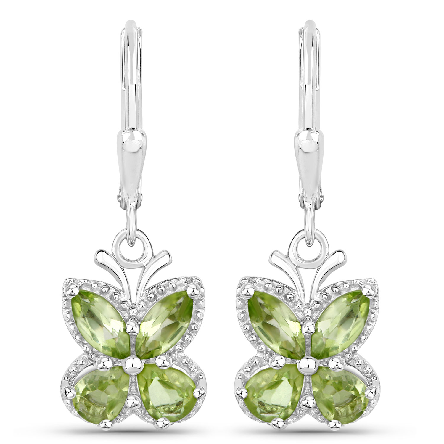 These enchanting earrings feature 2.28 carats total weight of marquis- and pear-cut, genuine peridot. These luscious green gemstones are prong-set in sterling silver and positioned as butterfly wings. The earrings hang approxiamtely 1.25" and attach to the earlobes with lever-backs. See more information below. AdminCode: bfjpb/5