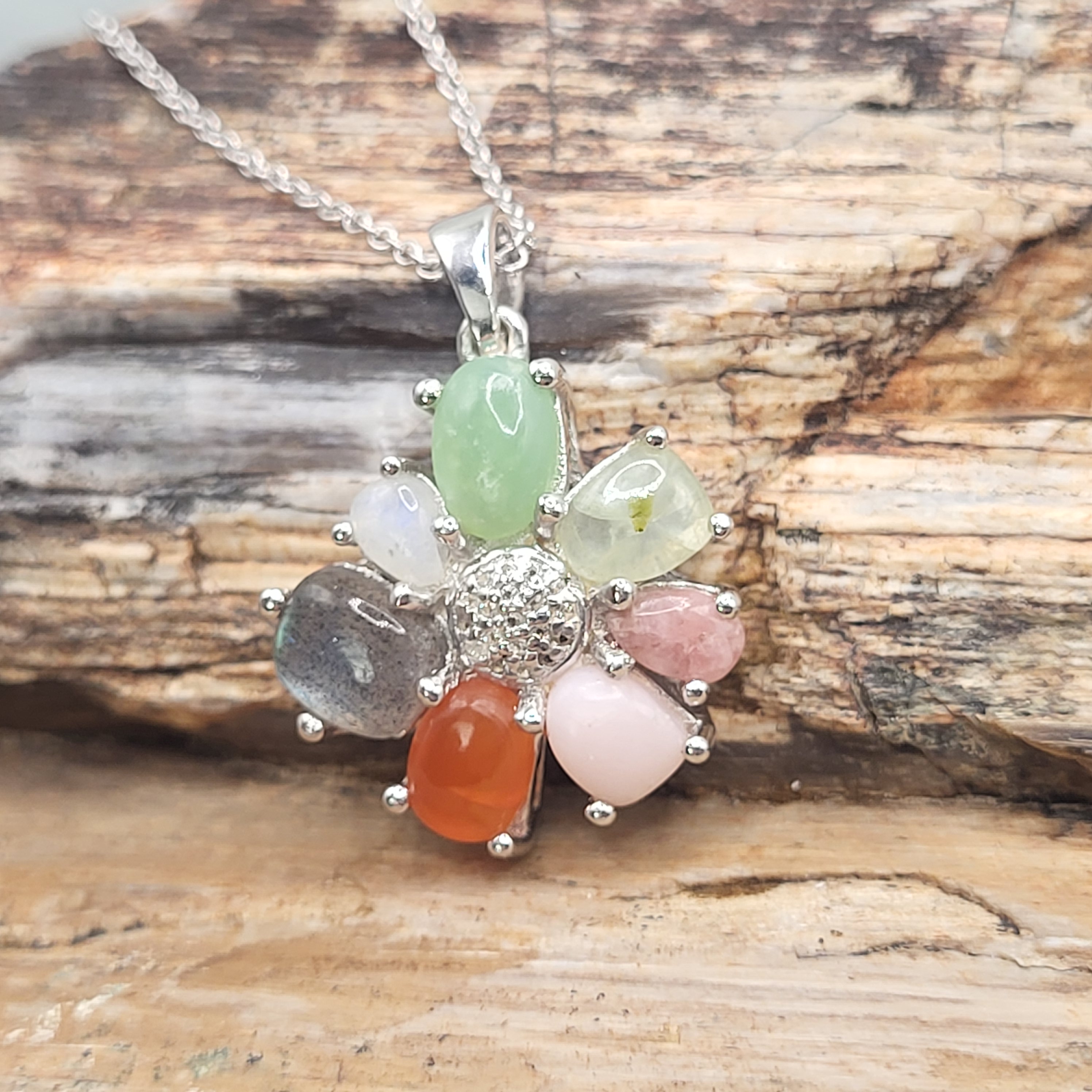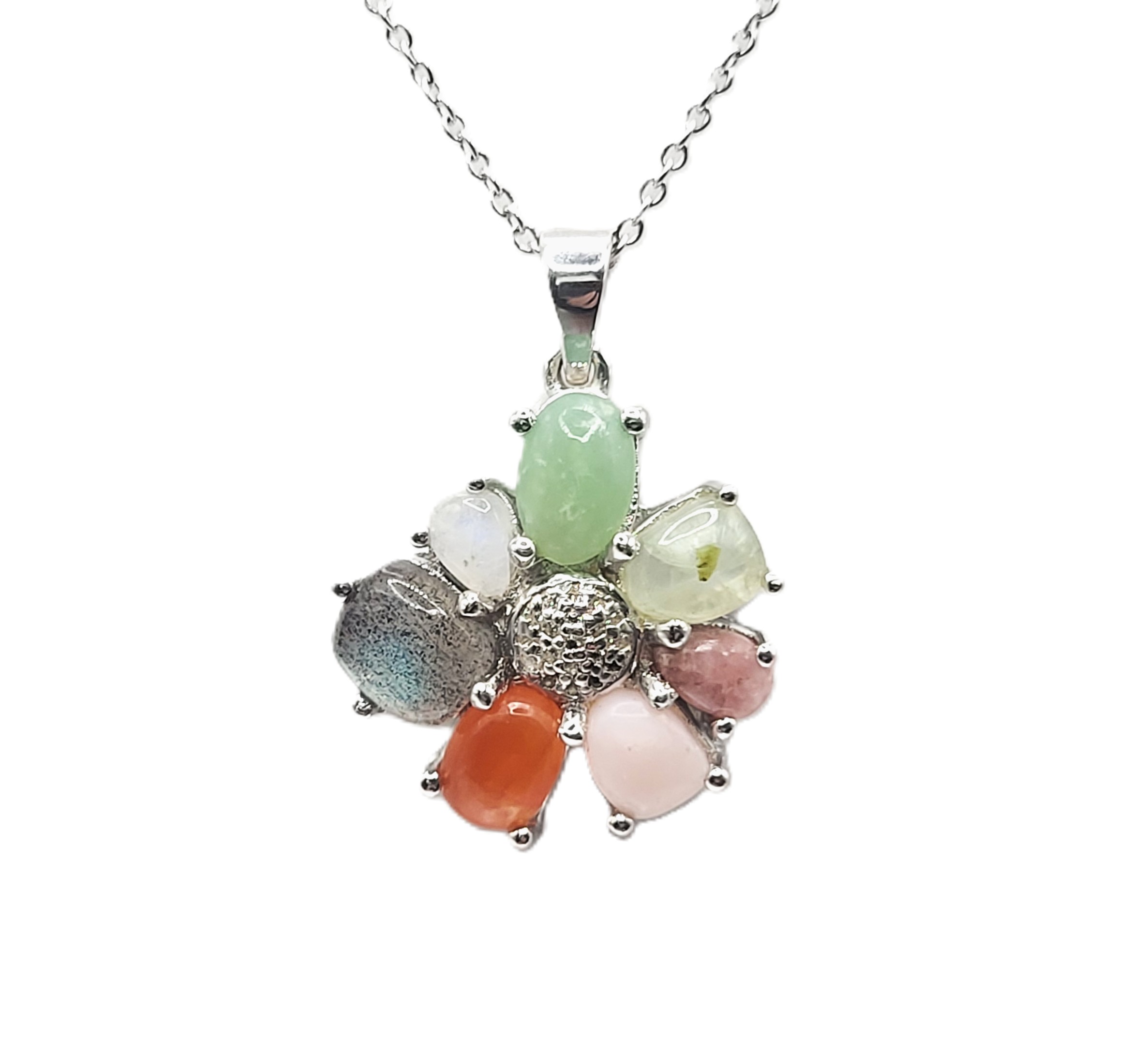 Including: Pink Opal, Rhodocrosite, Prehnite, Chrysoprase, Rianbow Moonstone, Labradorite, Fire Opal, and White Topaz