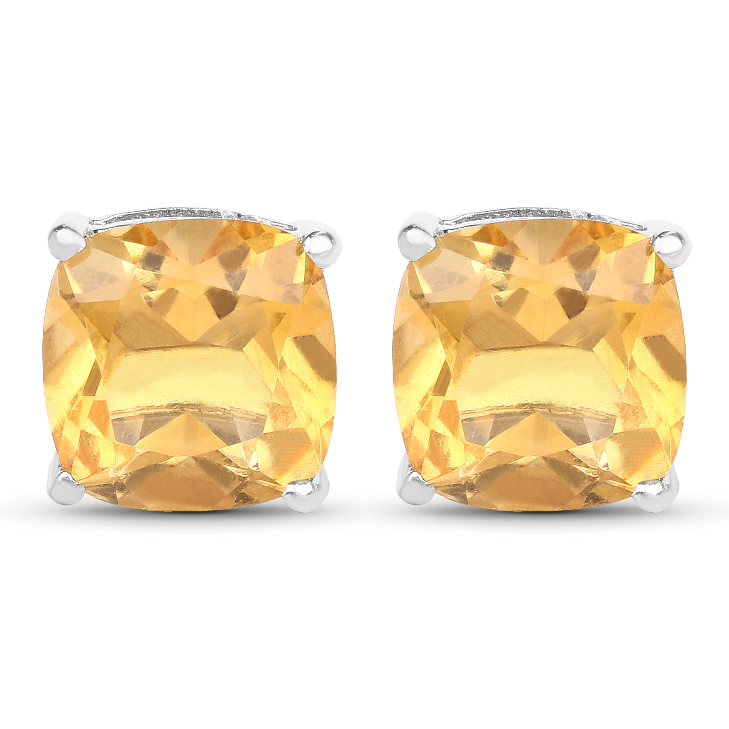 This pair of sterling silver earrings represents November’s birthstone and 13th anniversaries. The 5.80 carats total weight of genuine citrine are cushion-cut, prong-set, and at 9mm, everyone will see them. They have a tarnish-resistant rhodium finish and attach to the earlobe with posts and friction backs feMA. AdminCode: QKQ6362/il