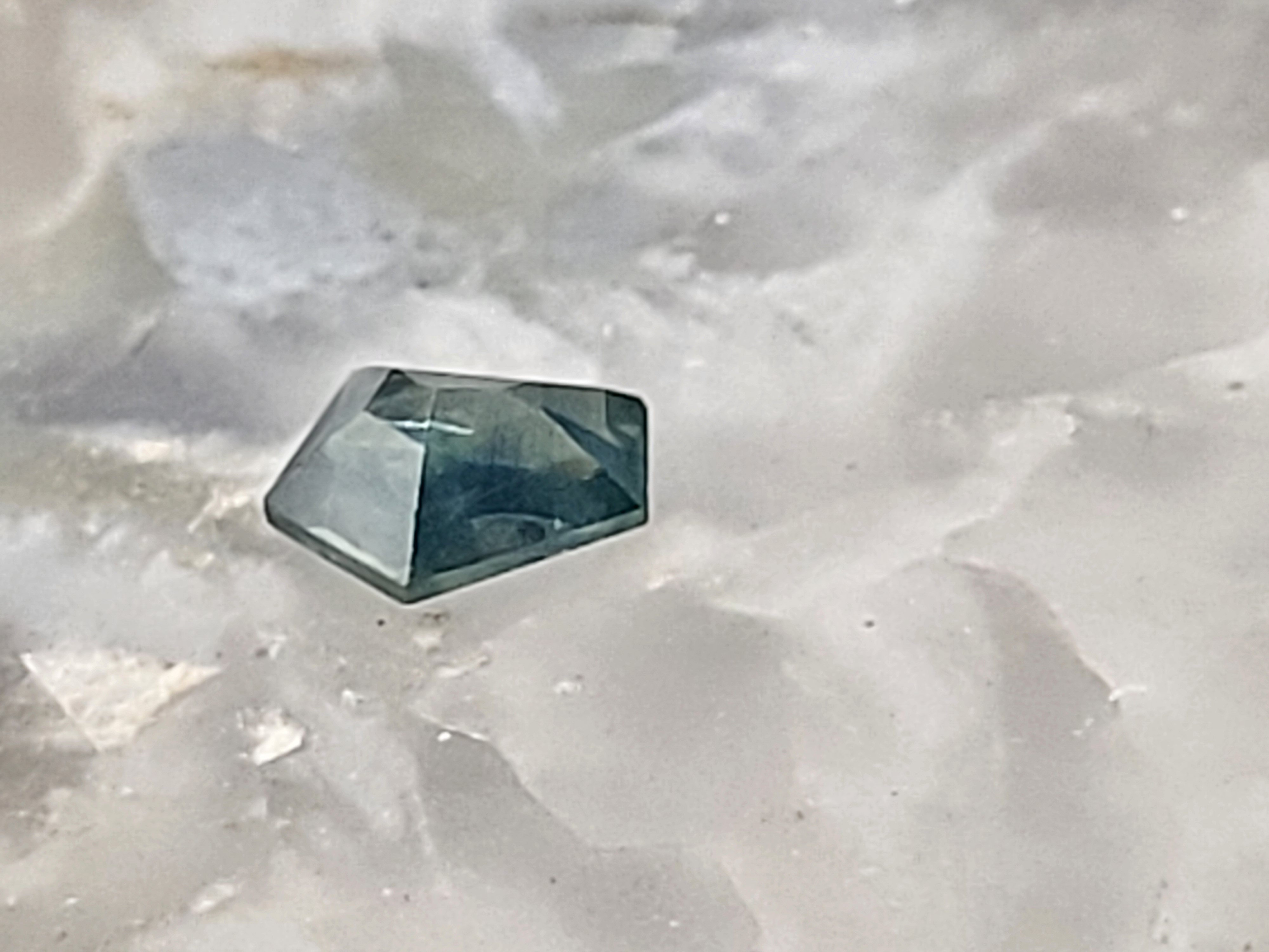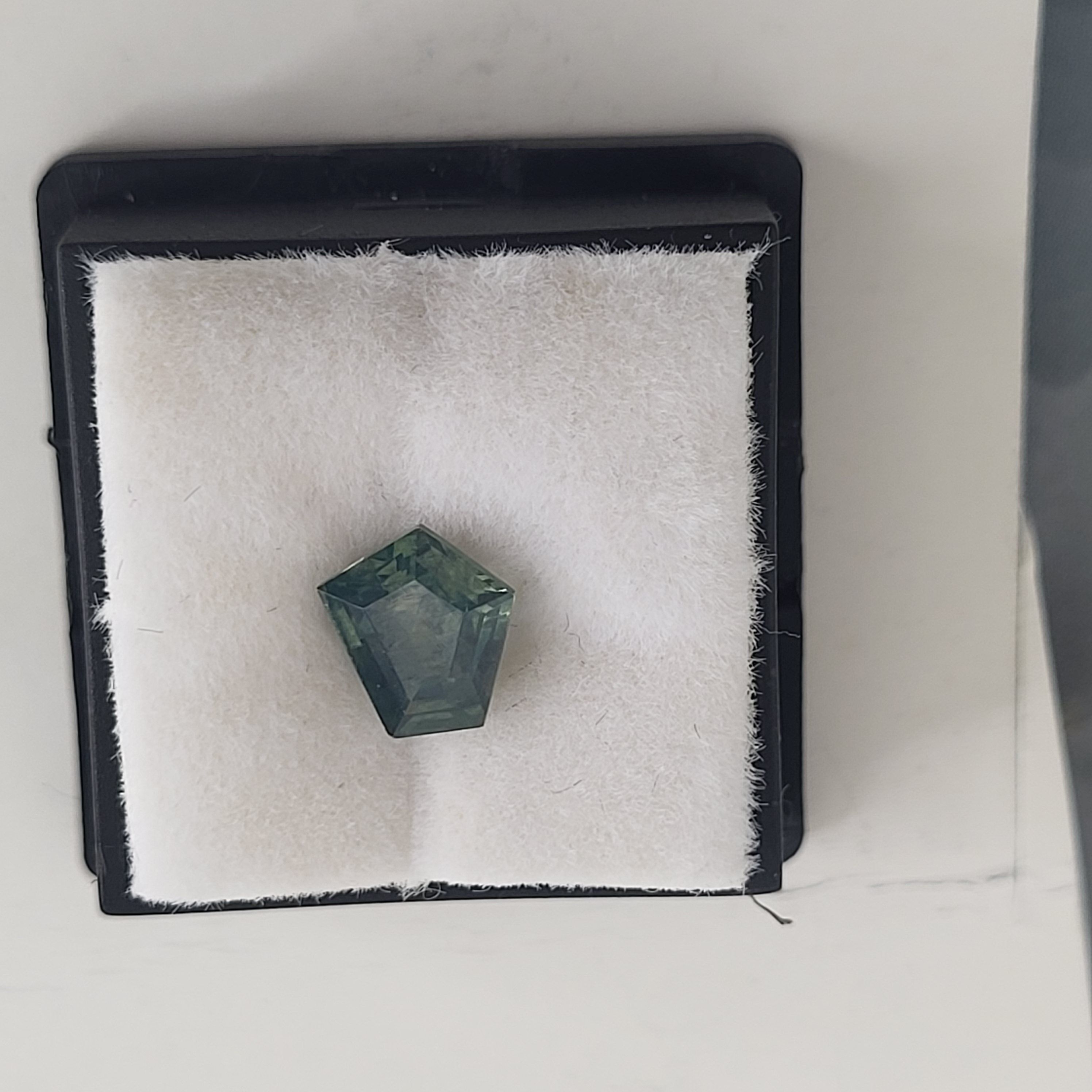 This 1.15 ct heated Montana sapphire commands attention with its bold, architectural cut—a pentagon shape that evokes a houes-like silhouette. Its blue-green hue dances across crisp facets, revealing depth and brilliance that shift with the light. This sapphire has a satisfying body, offering both visual weight and tactile presence. This gem blends precision cutting with organic intrigue, making it a standout for collectors and designers alike. AdminCode:BKmstUH-ing