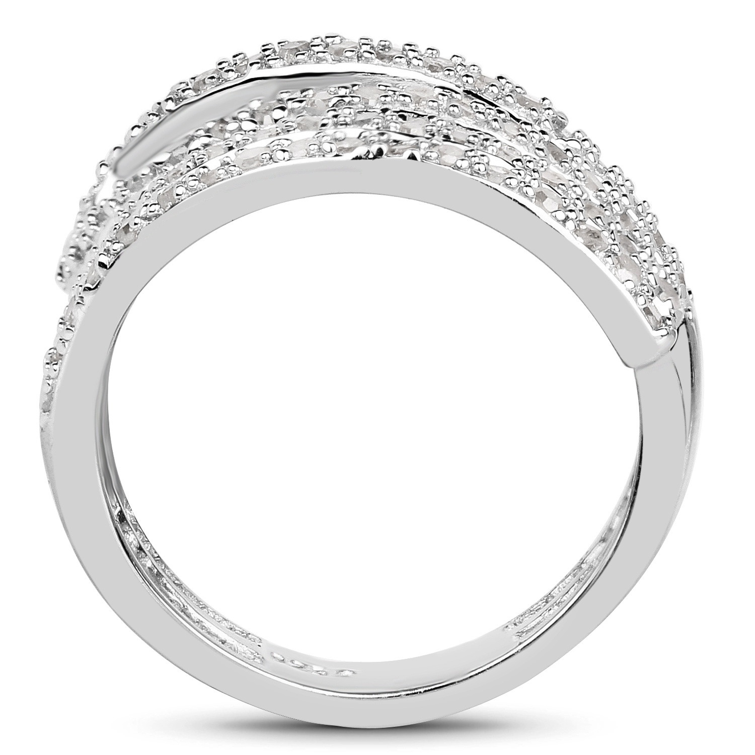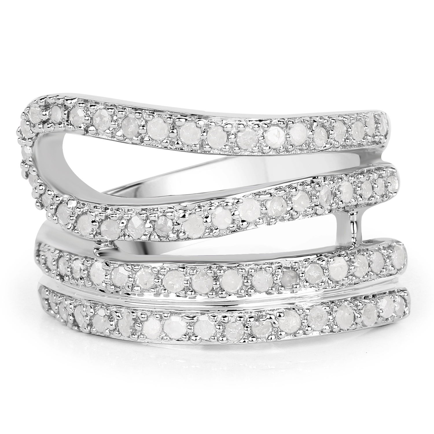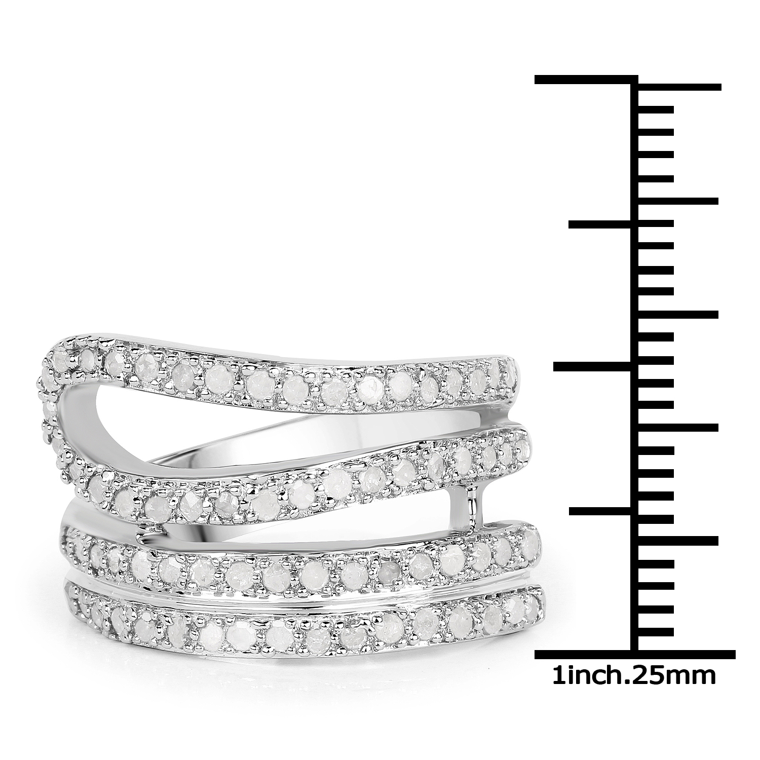 Talk about being "wrapped around your finger"!  This ring certainly let’s everyone know it’s true!  This sterling silver ring features .83 carats of round, faceted, I-J color, I2-I3 clarity, genuine, Earth-mined diamonds that seems to spiral up the finger like a lasso!  The ring is US size 7 and the diamonds, though they appear to completely circle the finger, are only on top, so there are sizing options with this ring. See the sizing options and other information below. AdminCode: NQnis/bpr5