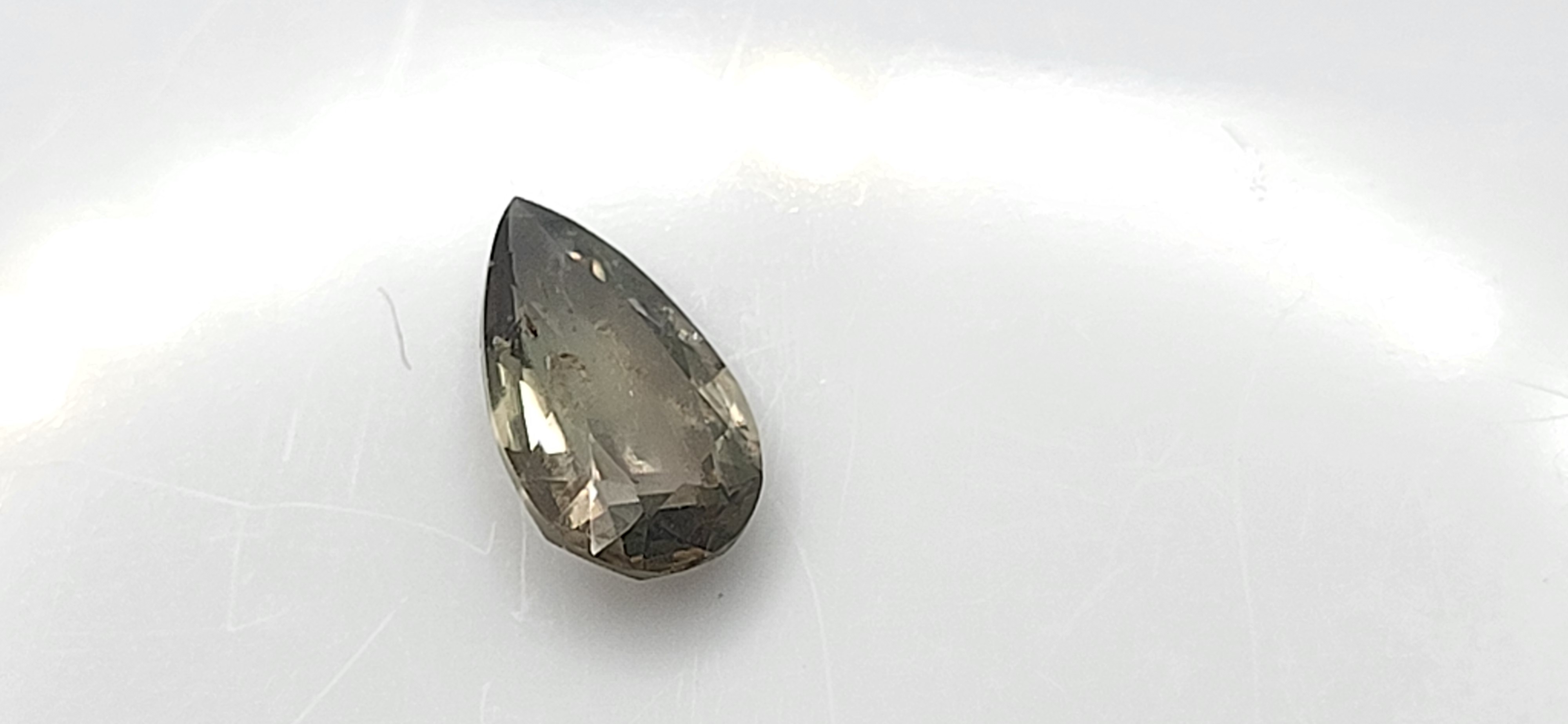 A mesmerizing 1.82 carat Montana sapphire in a pear-shaped cut, showcasing rare polychrome coloration with dynamic shifts in hue. This natural gemstone reveals a captivating interplay of smoky grays, earthy browns, and subtle flashes of violet and blue depending on the light source — a true color-changing marvel. Expertly faceted to enhance its internal reflections, the sapphire balances clarity with organic inclusions that speak to its raw origin. Ideal for collectors or designers seeking a statement piece with geological intrigue and visual drama. AdminCode: BK5/wgr