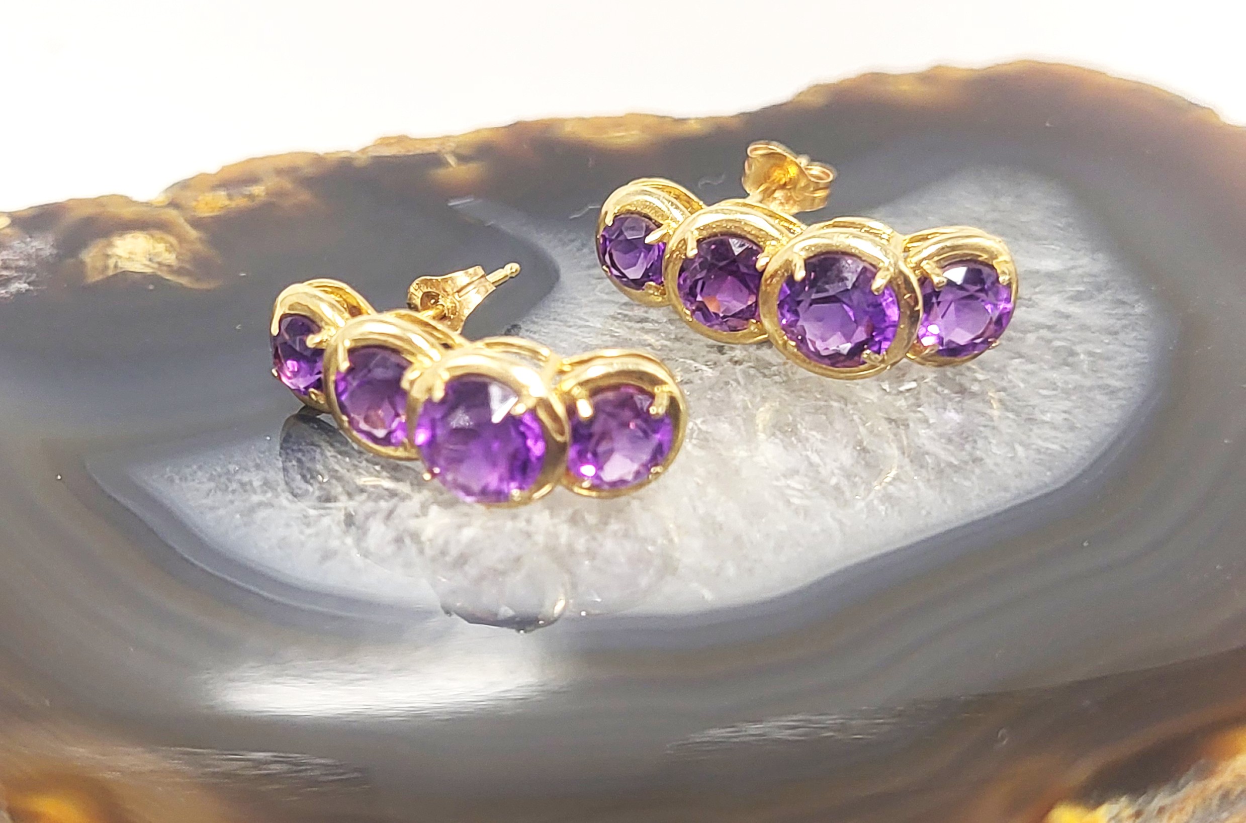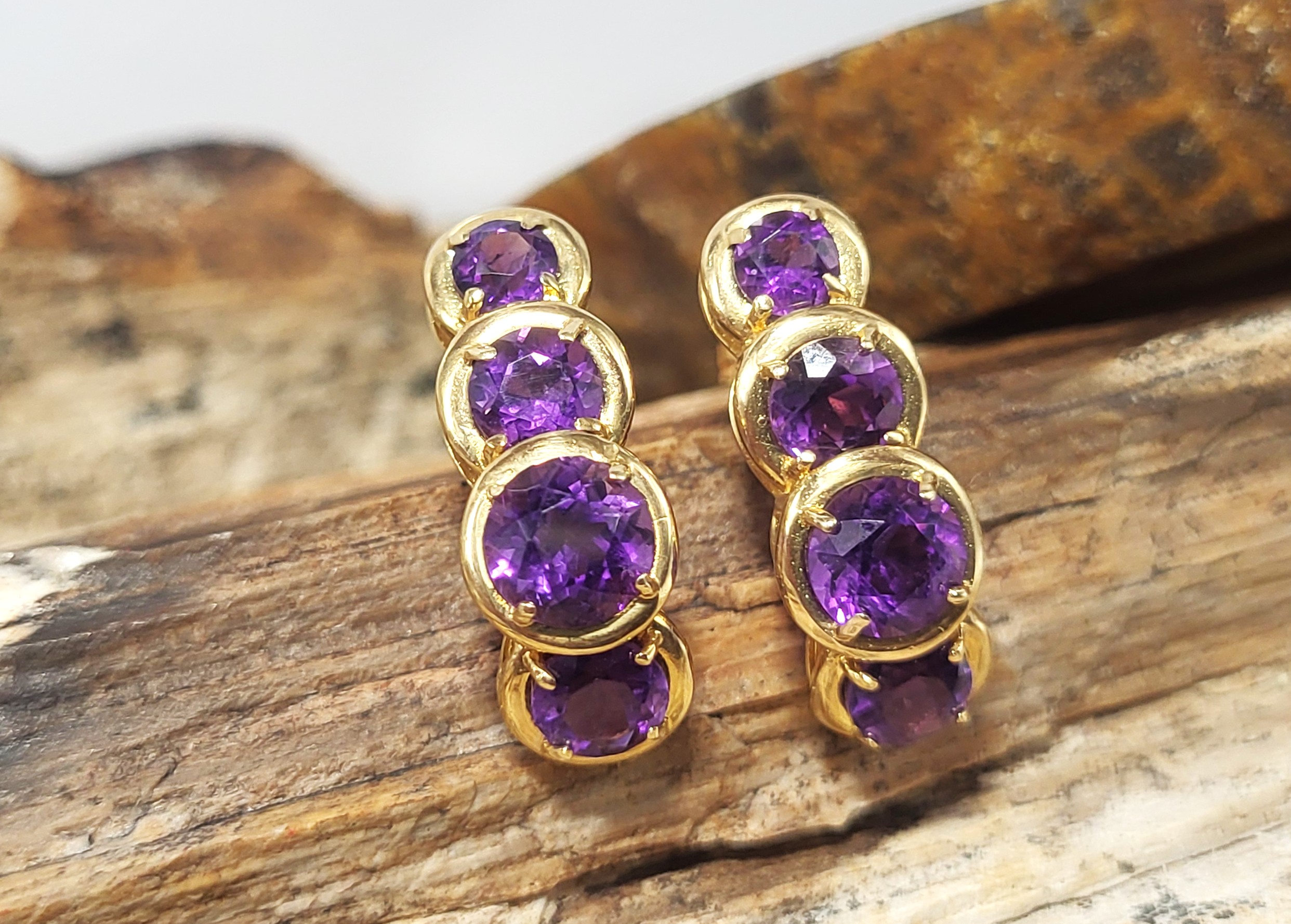 FunFact: If you like wearing your jewelry in ‘sets’, these earrings match much of the other amethyst jewelry in this catalog. Richly-colored purple amethysts have been a favorite gem for centuries!